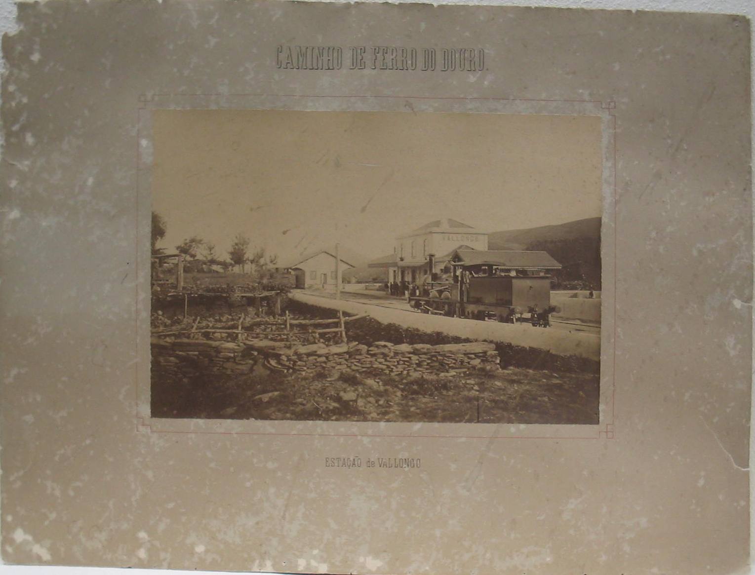 A fotografia está titulada, na margem superior: «CAMINHO DE FERRO DO DOURO» e, na margem inferior: «ESTAÇÃO DE VALLONGO». Existem dois carimbos do Instituto Superior de Engenharia do Porto, no verso.