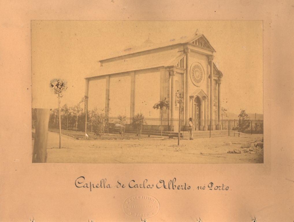| Observações: | Possui selo branco com marca do fotógrafo, onde se lê «M. J. de S. FERREIRA/ PHOTOGRAPHO/ PORTO». A fotografia foi identificada através do título escrito a pena, no cartão, abaixo da mesma: «Capella de Carlos Alberto, no Porto.» No verso, existem dois carimbos do Instituto Superior de Engenharia do Porto. |