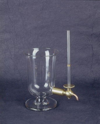 | Descrição: | Composto por um vaso em vidro com uma torneira em latão da qual sai um tubo de vidro. |