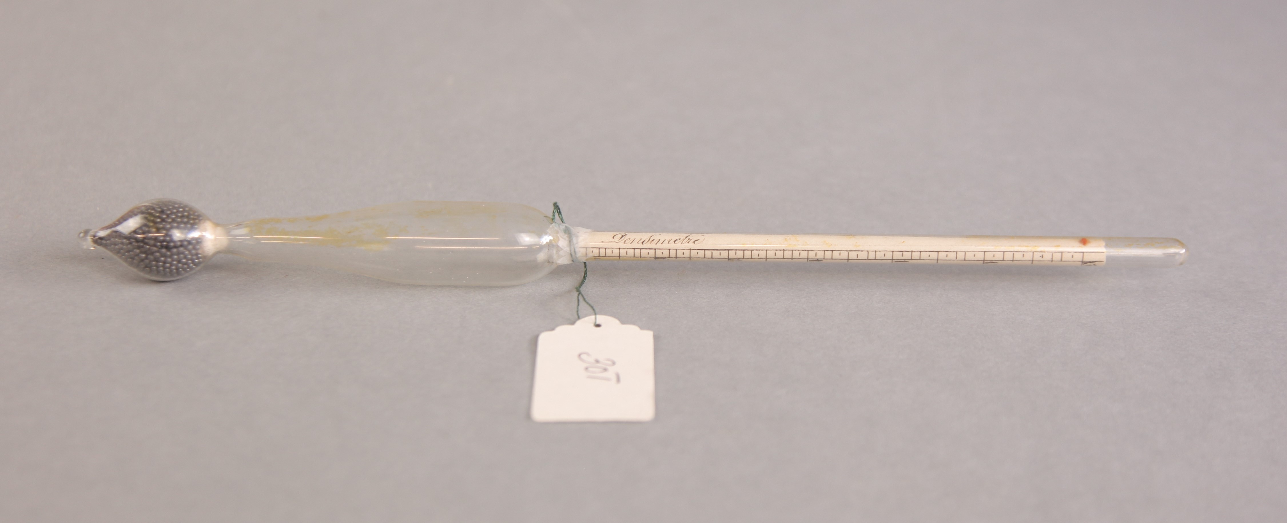 | História do Objecto: | Os densímetros são areómetros de peso constante que permitem determinar densidades de sólidos ou líquidos por considerações baseadas no princípio de equilíbrio dos corpos flutuantes (princípio de Arquimedes). O seu princípio de funcionamento deve-se a Joseph Gay-Lussac (1778-1850). |