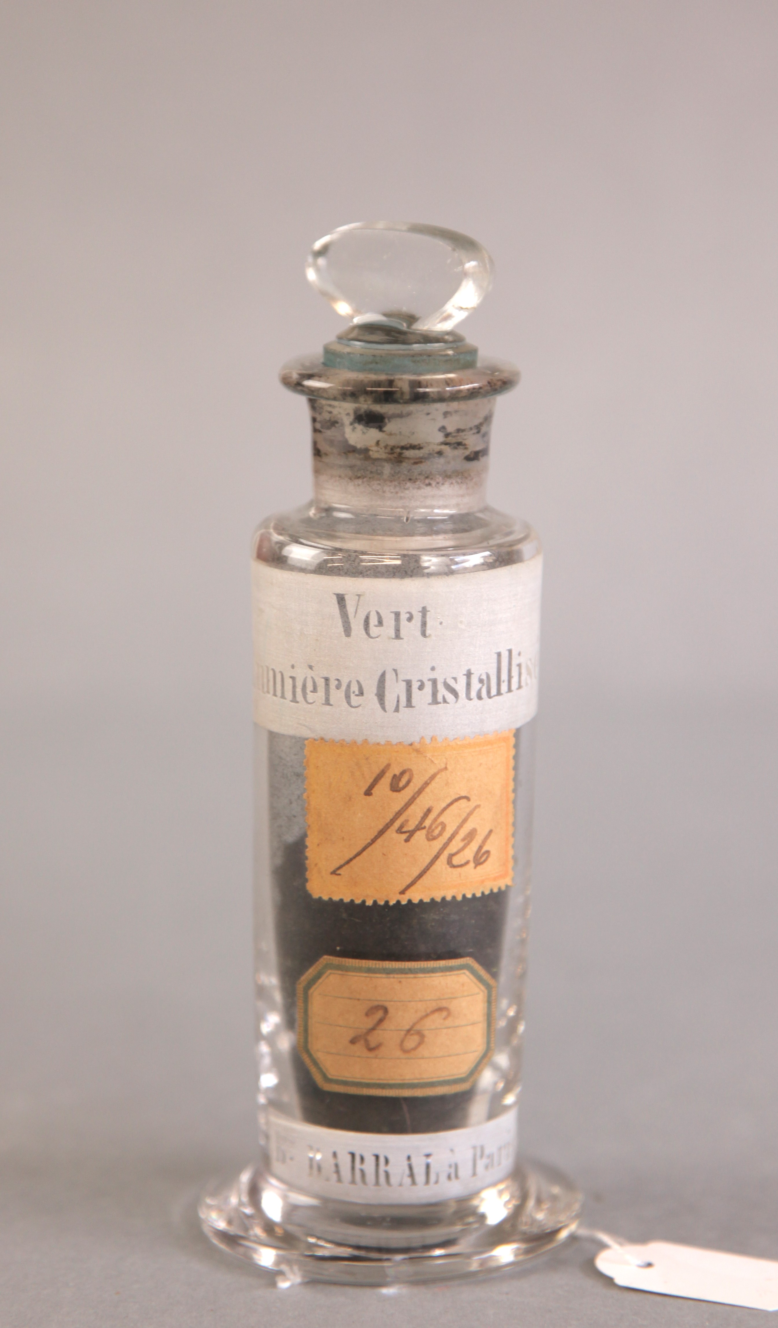 | História do Objecto: | Esta colecção de diversos frascos de materiais tintureiros e corantes, utilizados no laboratório químico, foi comprada em meados do séc. XIX. Em carta dirigida ao director da escola pelo lenta da 10ª cadeira, Agostinho da Silva Vieira, datada de 1890, refere que a colecção que existe veio de Paris por via da Ben. Barral. |