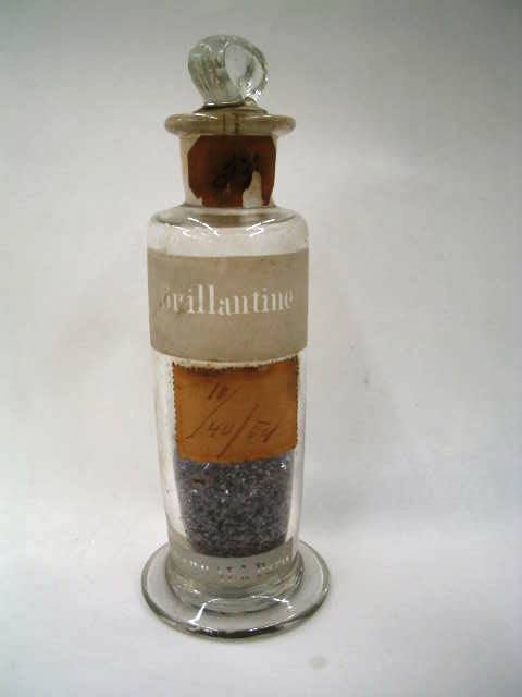 Esta colecção de diversos frascos de materiais tintureiros e corantes, utilizados no laboratório químico, foi comprada em meados do séc. XIX. Em carta dirigida ao director da escola pelo lenta da 10ª cadeira, Agostinho da Silva Vieira, datada de 1890, refere que a colecção que existe veio de Paris por via da Ben. Barral.