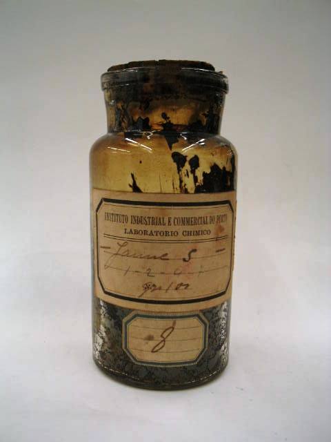 | Descrição: | Frasco de vidro de boca larga com rolha de cortiça. |