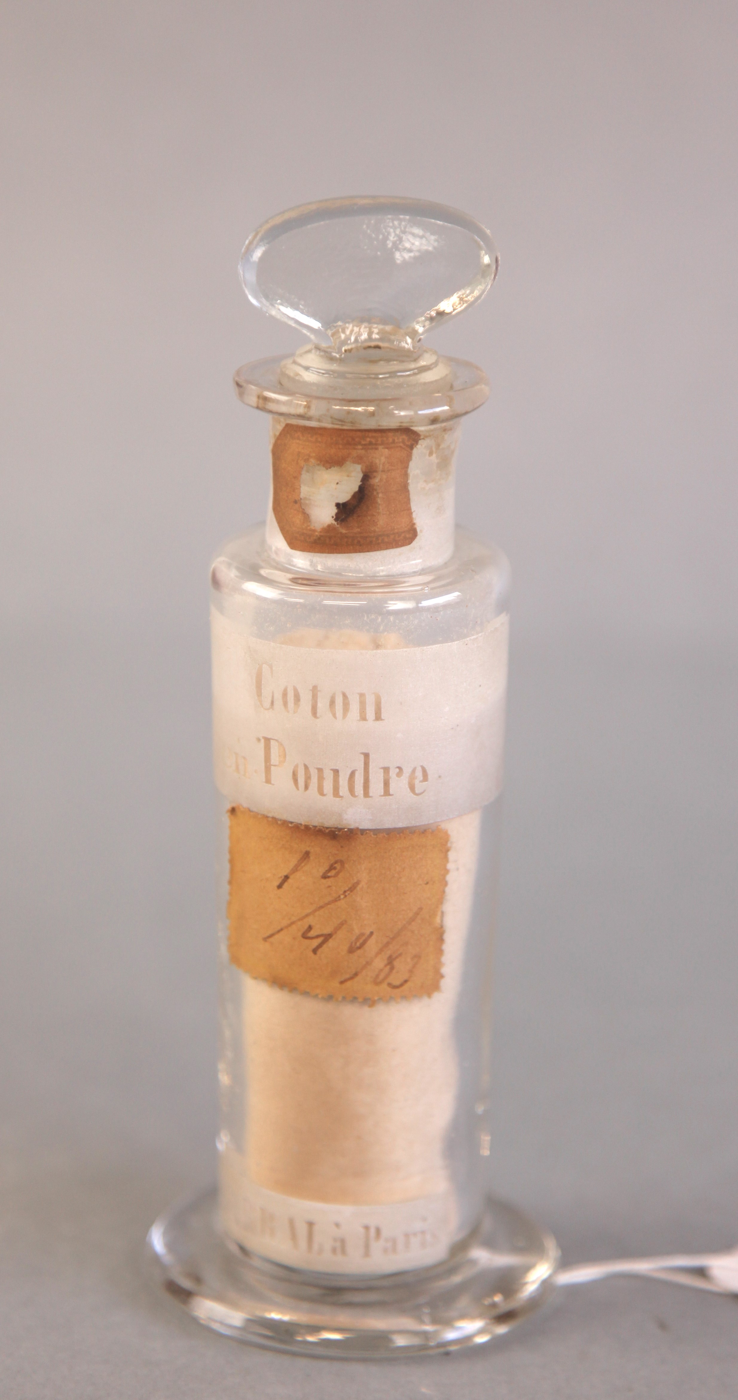 | Descrição: | Frasco de vidro de boca larga e rolha esmerilada com etiqueta vitrificada, contendo no seu interior substância utilizada em experiências no laboratório quimico. |