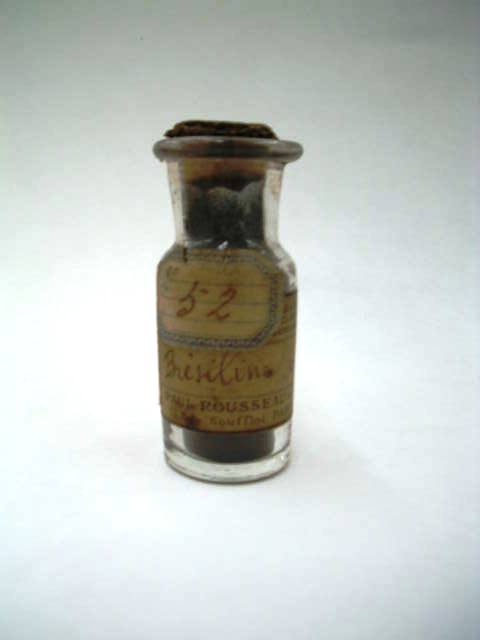 | Descrição: | Frasco pequeno de vidro com tampa de cortiça. |