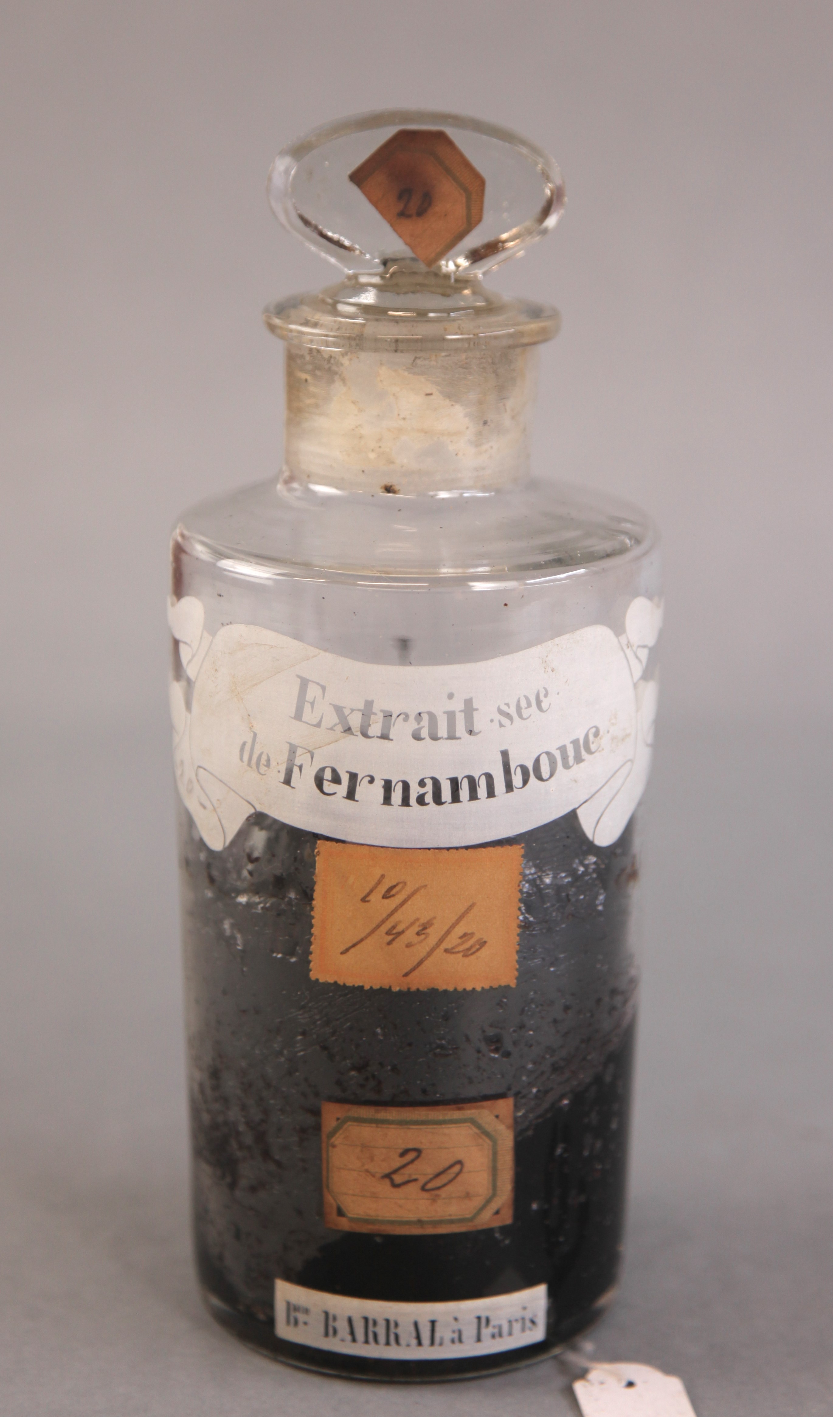 | Descrição: | Frasco de vidro de boca larga e rolha esmerilada. |