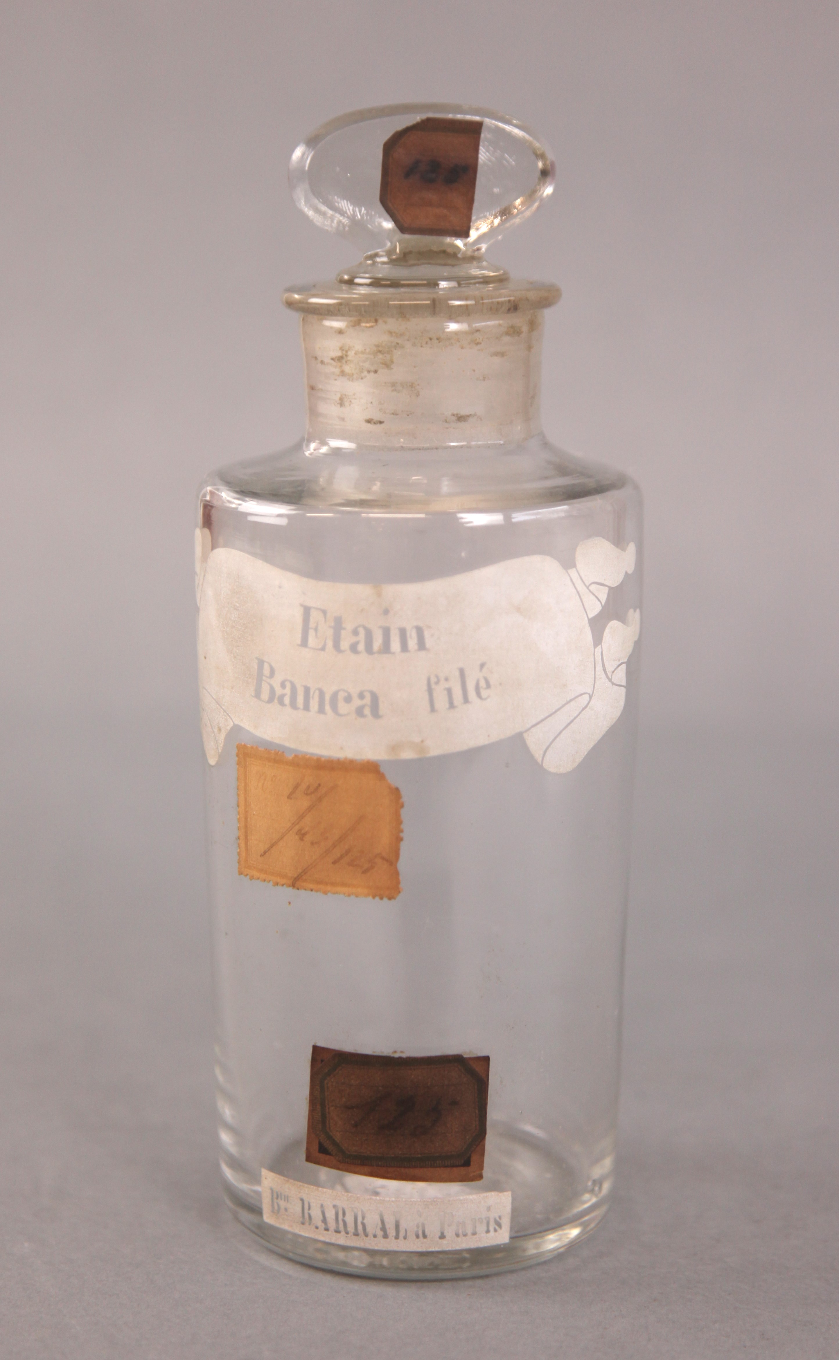 | Descrição: | Frasco de vidro de boca larga e rolha esmerilada. |