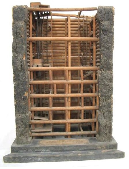 | Observações: | Na Academia de Freiberg existe um modelo idêntico a este com a denominação "Modell Schachtzimmerung", com a referência V.53./Aka6,THh e nº inventário T - V 53 que faz parte da colecção "Histor. Produktioninstrumente" |