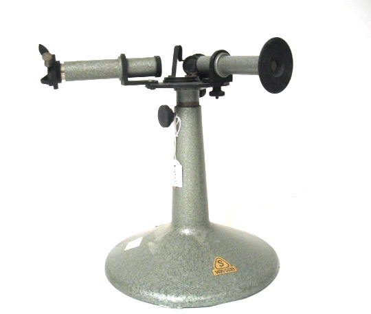 | Descrição: | Composto por um eixo vertical ou pé, que sustenta um disco circular ou plataforma. Em volta do disco estão colocadas três lunetas. |