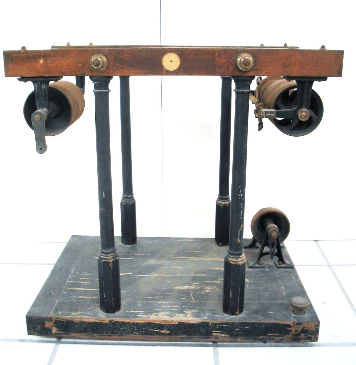 | Descrição: | Transmissão secundária de movimento à direita e à esquerda, interrupção e roldanas cónicas. |