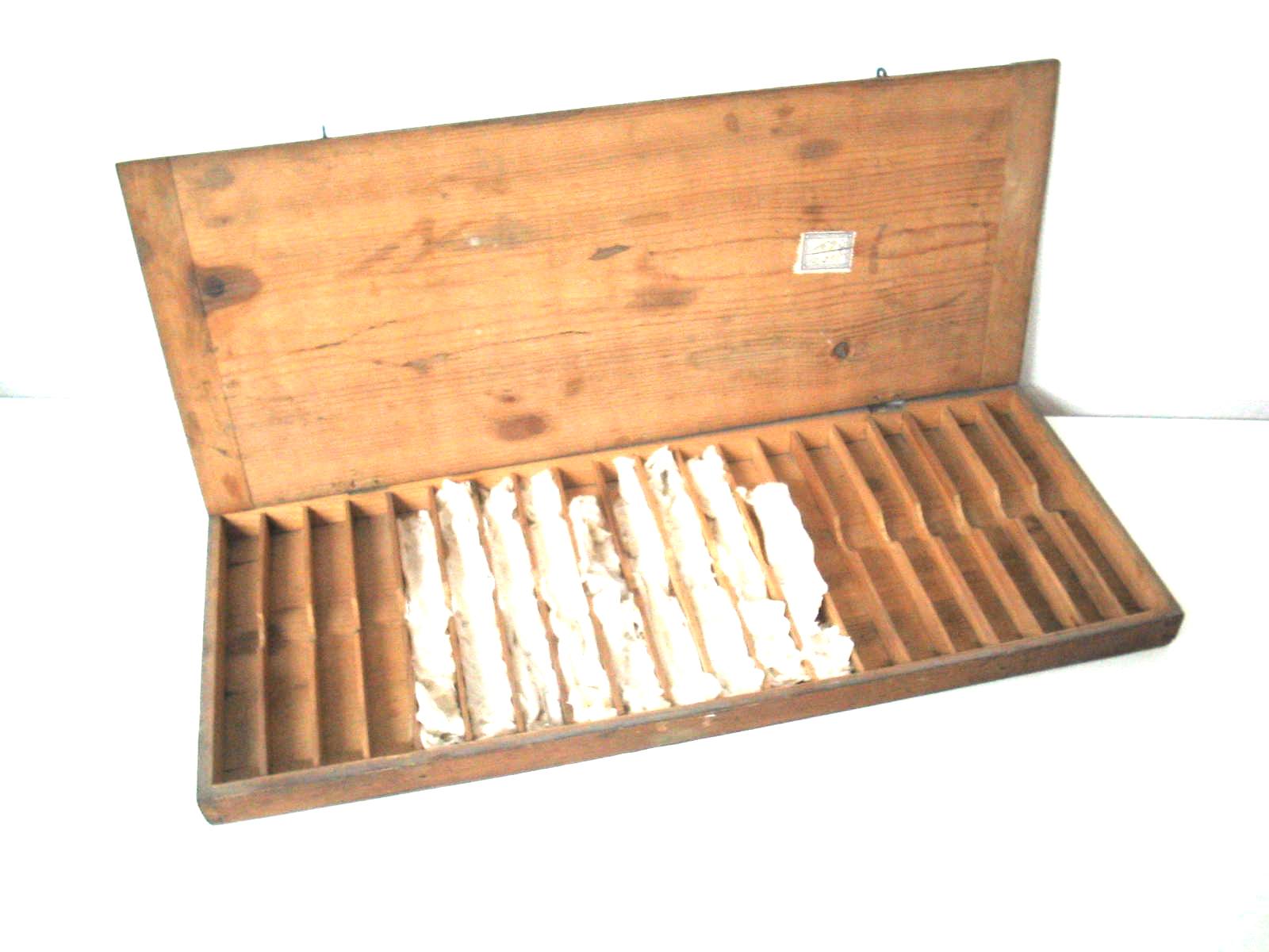 | Descrição: | Composta por uma caixa em madeira (com pouca altura). No seu interior existem 20 reentrâncias onde se colocavam os densímetros. |