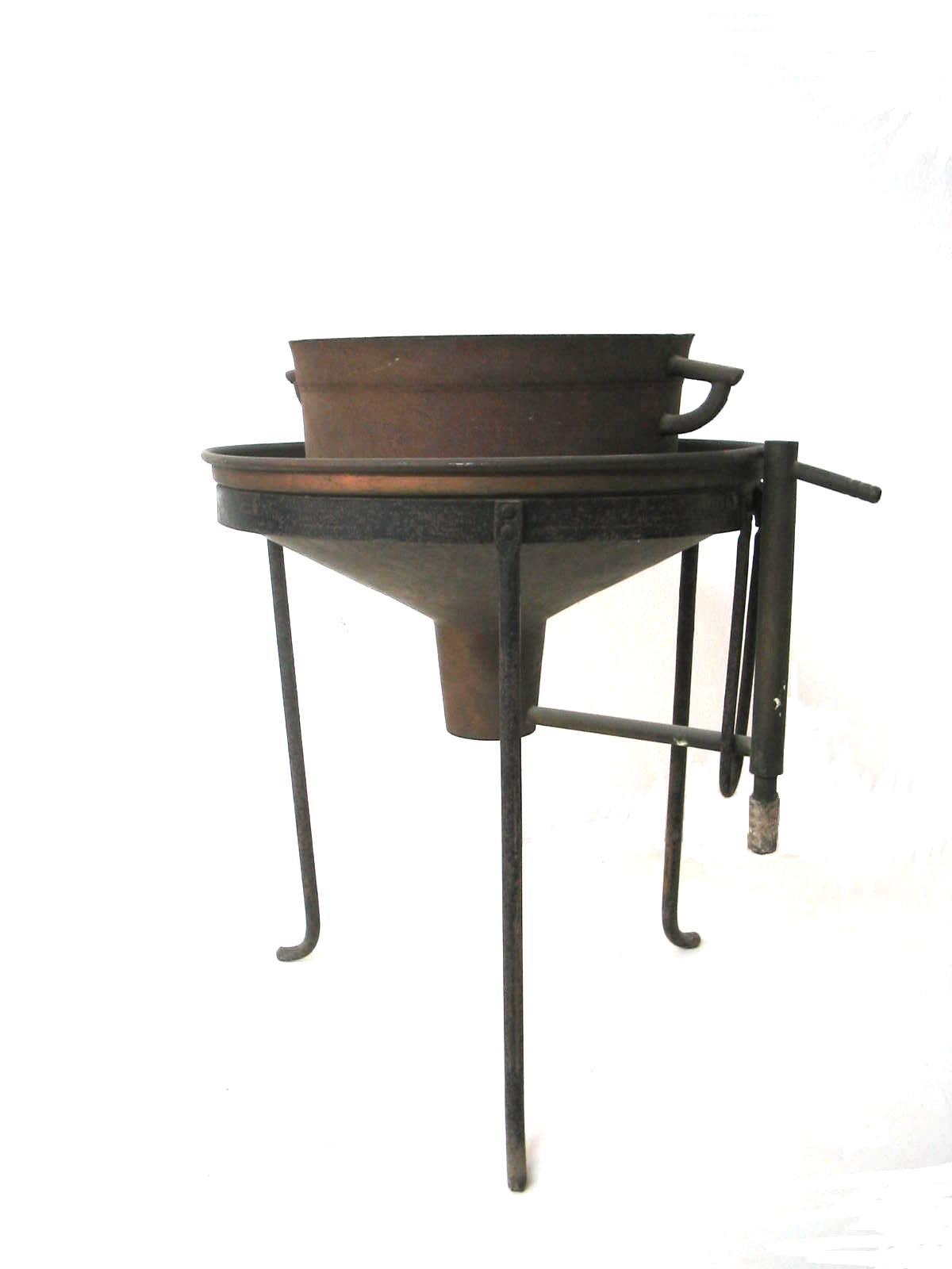 | Descrição: | Composto por uma bacia de cobre vermelho e assenta num tripé de ferro. |