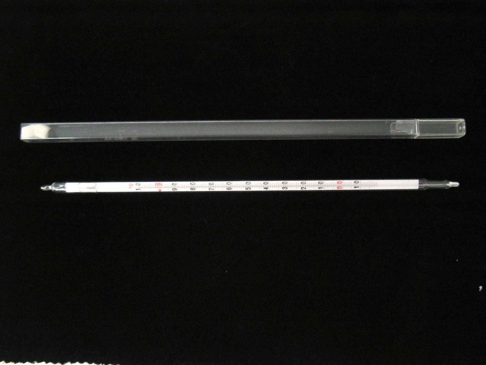 | Finalidade: | Utilizado para observar a temperatura que vão alcançando as substâncias quando aquecidas. O fluído termométrico é o mercúrio. |