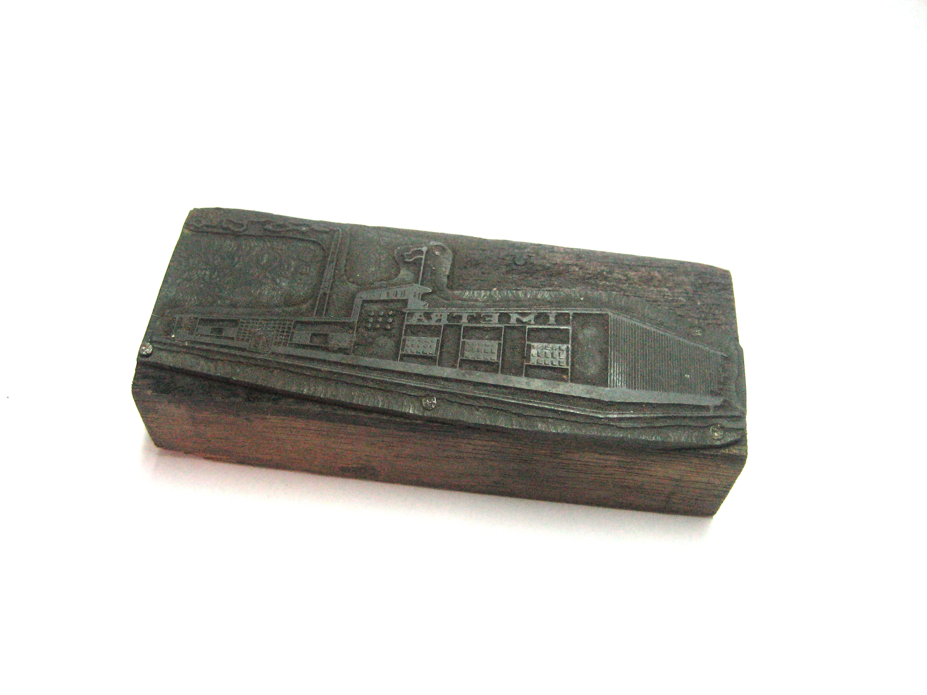 Composta por uma base em madeira onde esta colocada uma placa de zinco que servia de matriz.