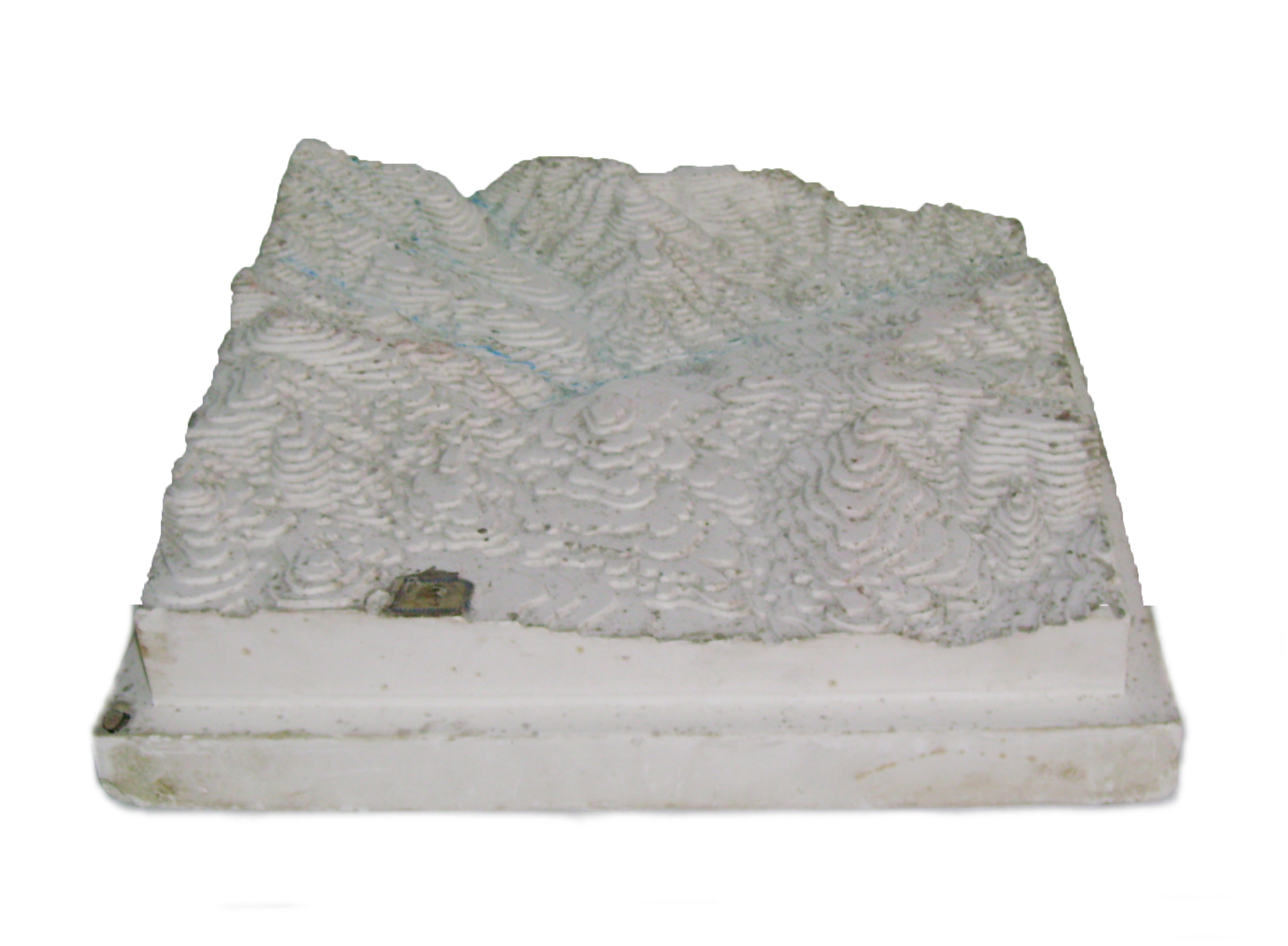 | Descrição: | O modelo em gesso representa o terreno montanhoso em relevo e indica as curvas de nível. |