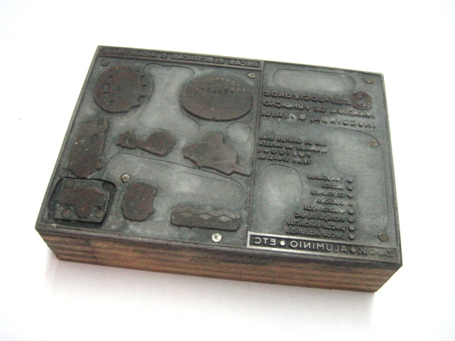 Composta por uma base em madeira onde esta colocada uma placa de zinco que servia de matriz.