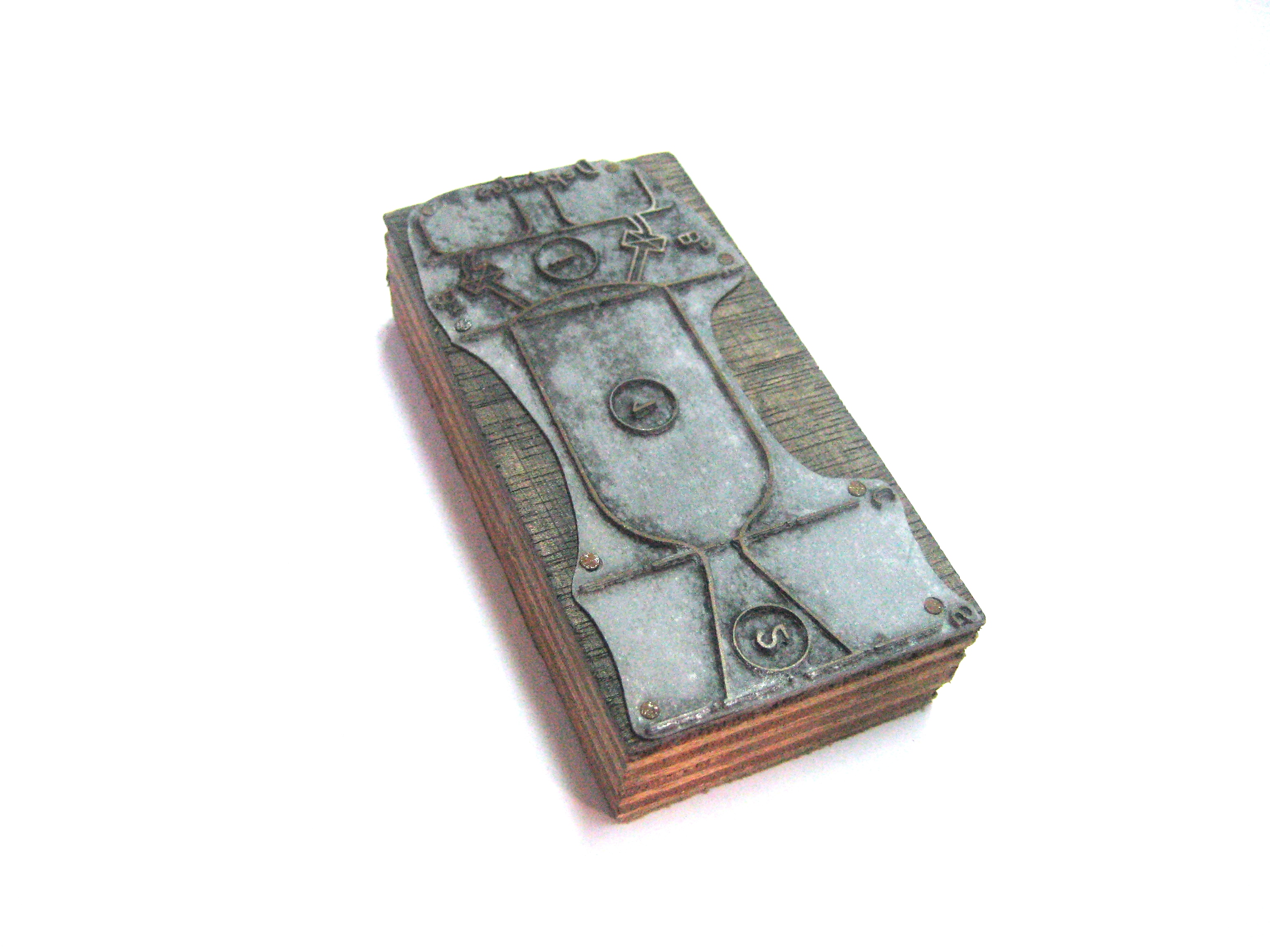 Composta por uma base em madeira onde esta colocada uma placa de zinco que servia de matriz.