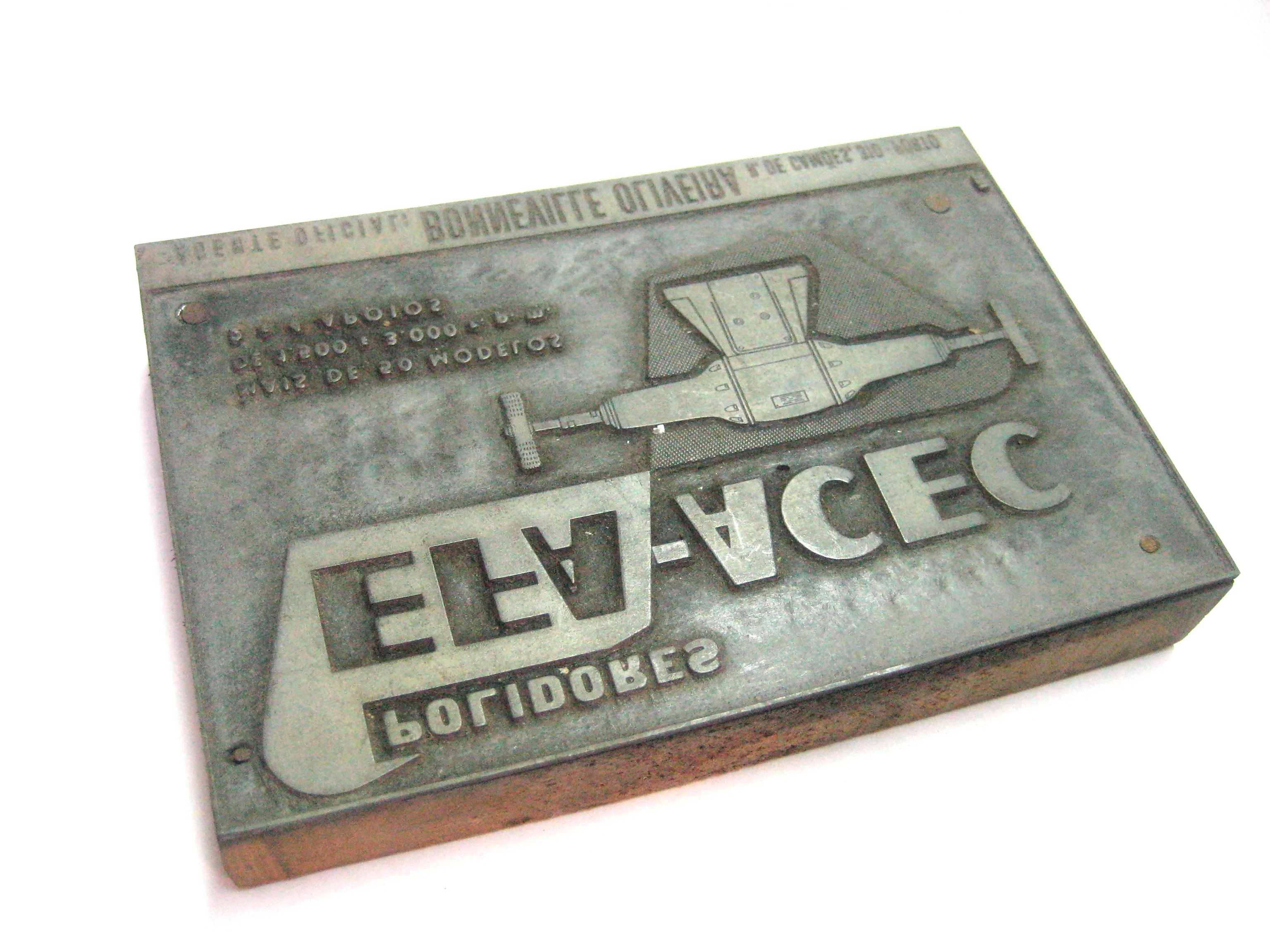 Composta por uma base em madeira onde esta colocada uma placa de zinco que servia de matriz.