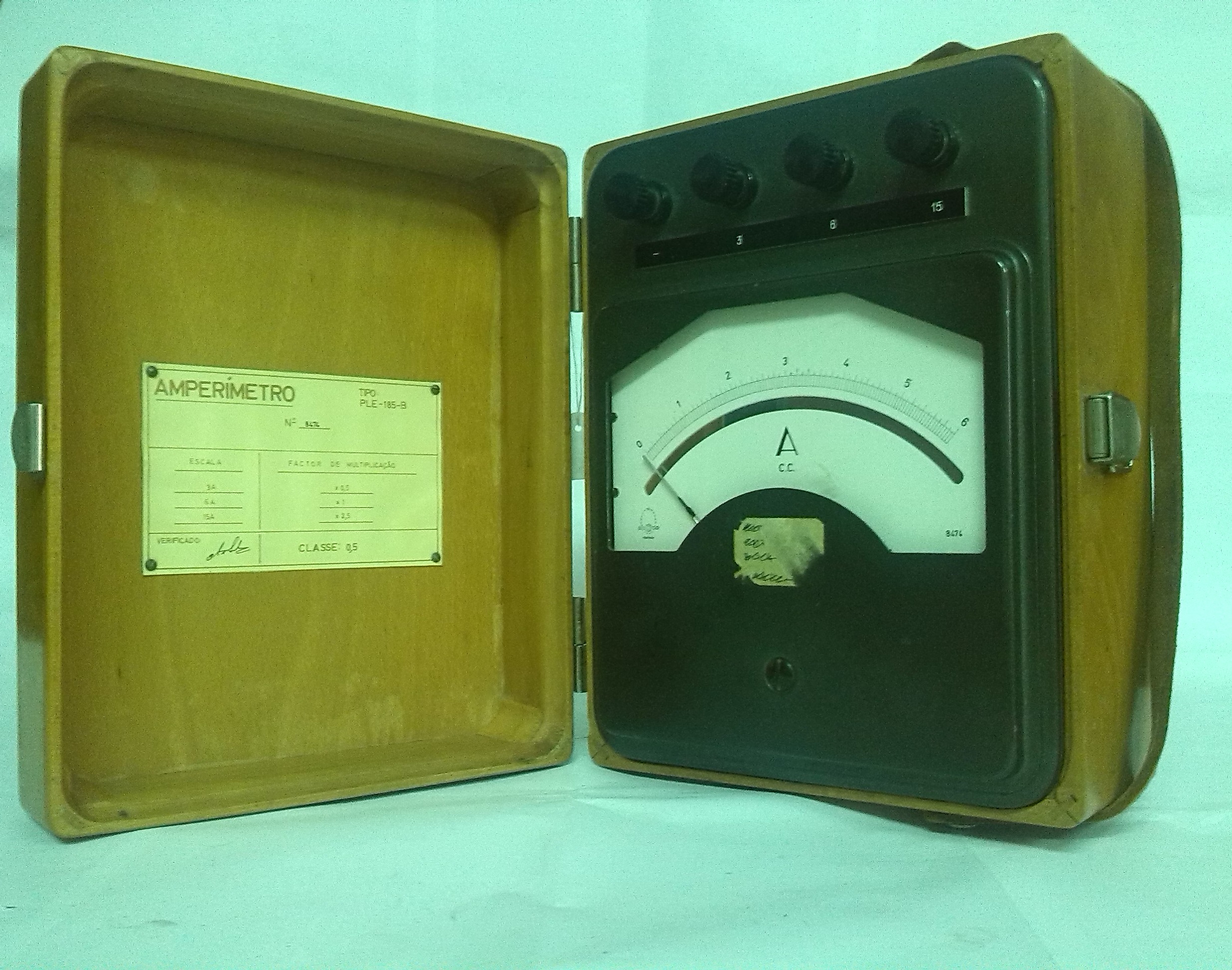 | Finalidade: | Instrumento de medida da intensidade de amperímetros (A), no fluxo da corrente elétrica que passa através da sessão transversal de um condutor. Este aparelho é por sua vez, ligado em série no circuito e tem por isso, uma resistência elétrica interna baixa (poucos ohms) de modo a não alterar as condições de funcionamento do circuito, principalmente na corrente a medir. |