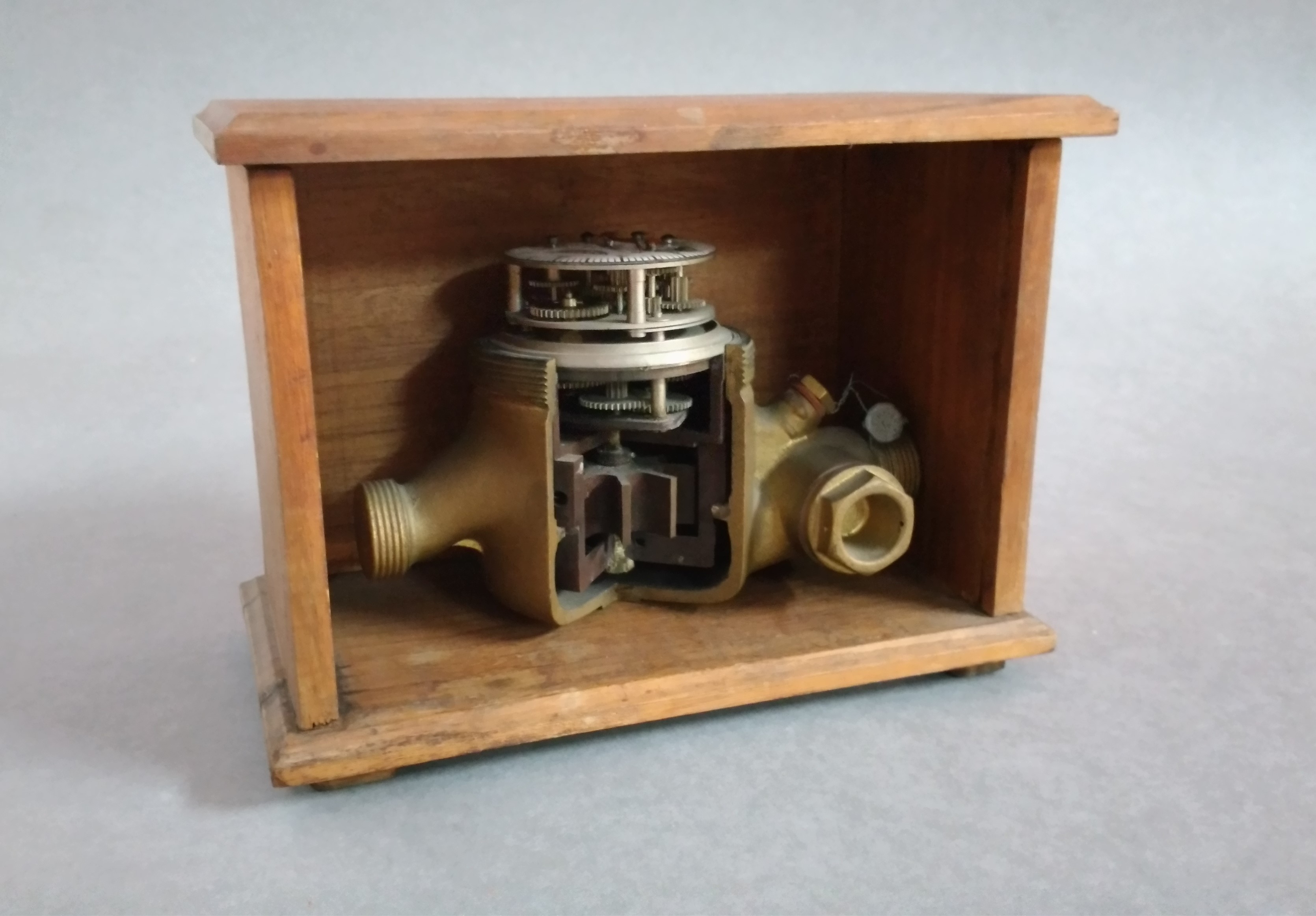 | Descrição: | A partir da corrente da água, uma serie de rodas dentadas são movidas, conseguindo-se assim na parte superior a leitura do caudal gasto. |