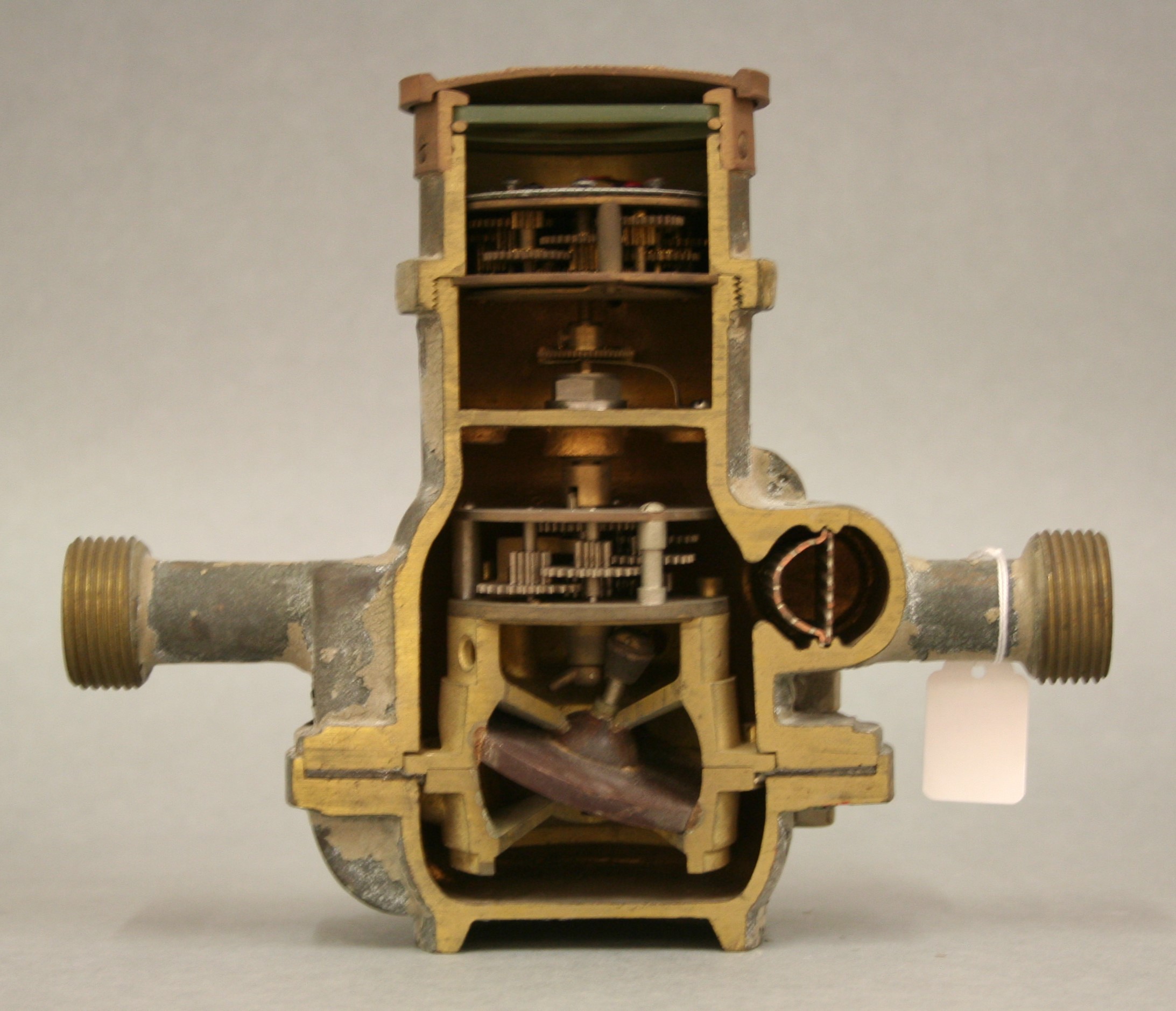 | Descrição: | A partir da corrente da água, uma serie de rodas dentadas são movidas, conseguindo-se assim na parte superior a leitura do caudal gasto. |
