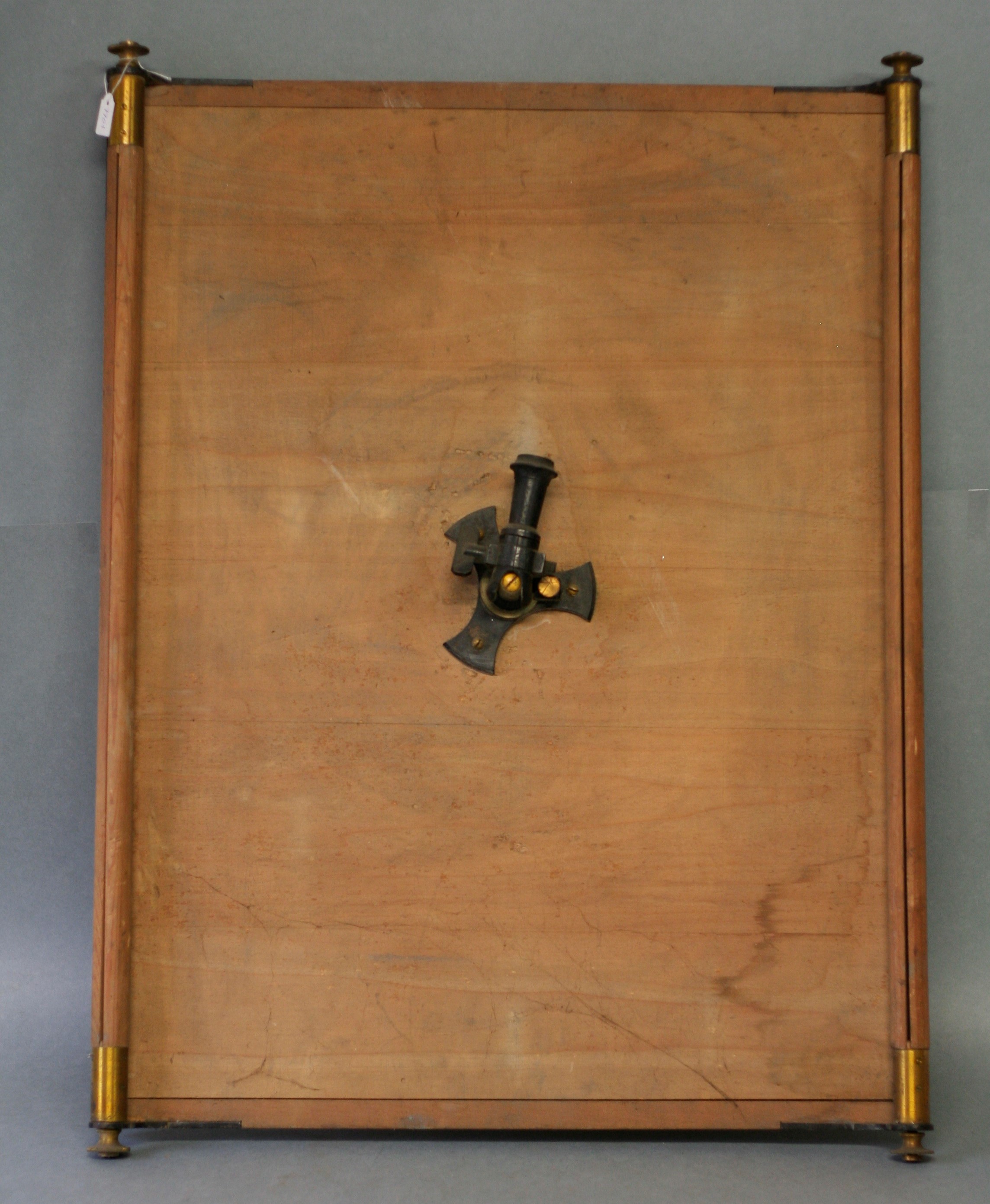 | Descrição: | Composta por um retângulo ou quadrado de madeira.. Esta liga-se a um tripé por intermédio de um "joelho". Para isso, a prancheta tem na sua face inferior, alojamento roscados para três parafusos existentes nos três braços do prato superior. |
