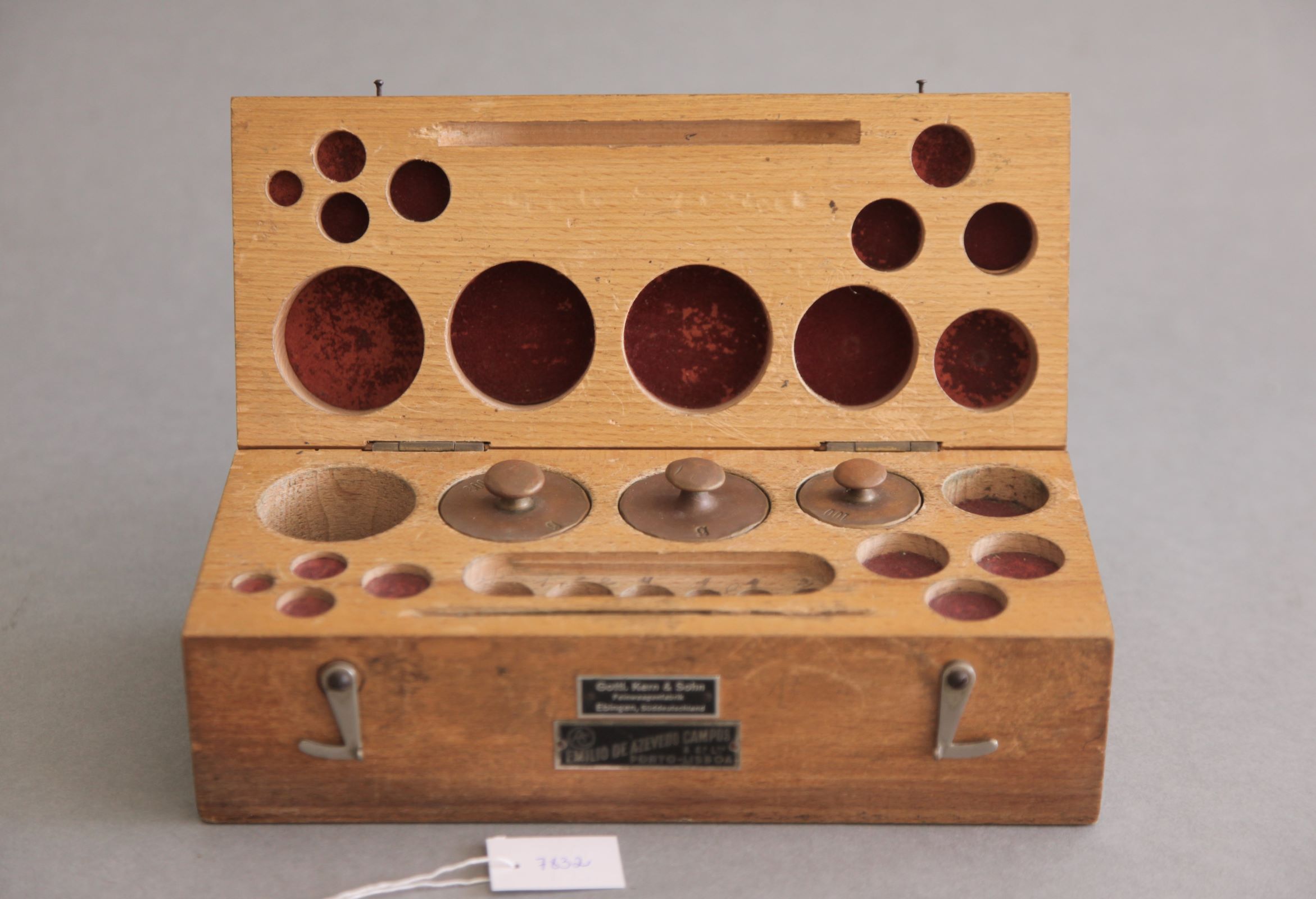 | Descrição: | Caixa de pesos em madeira, contudo, não está completa. |