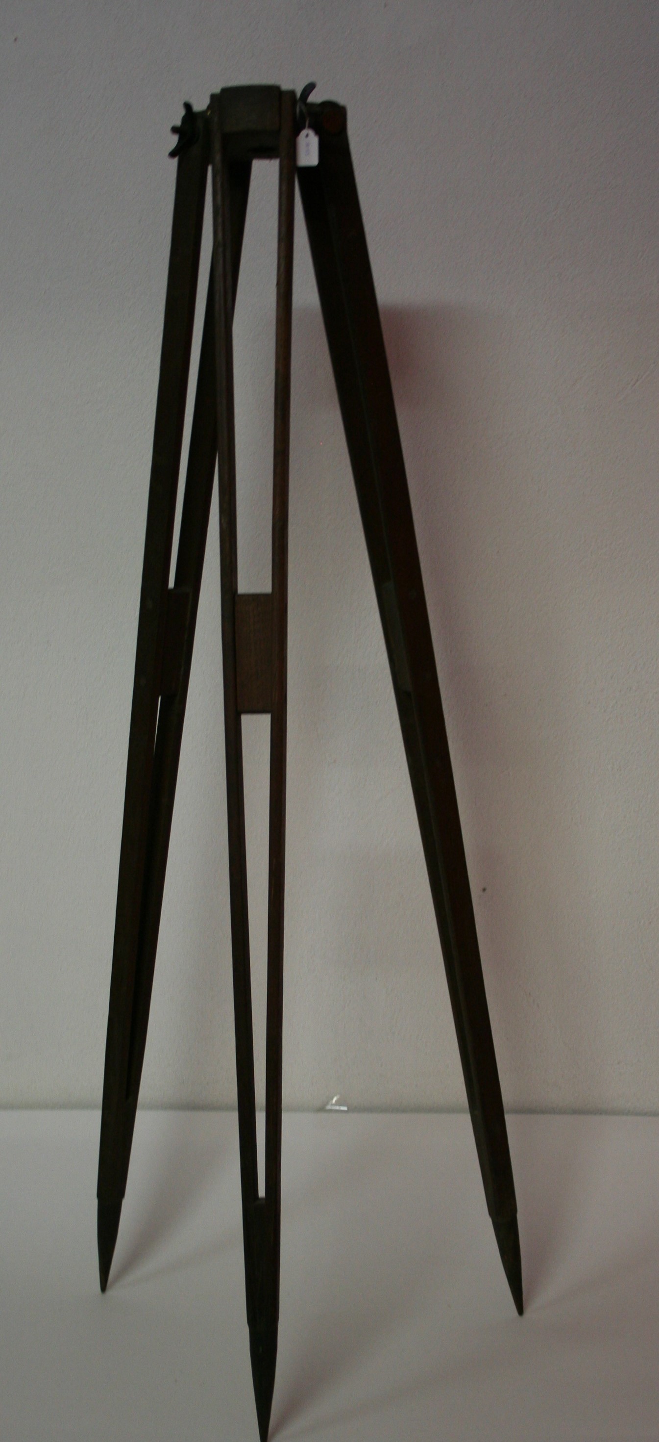 Composto por três pés ou escoras articuladas e um superior para apoio do instrumento.