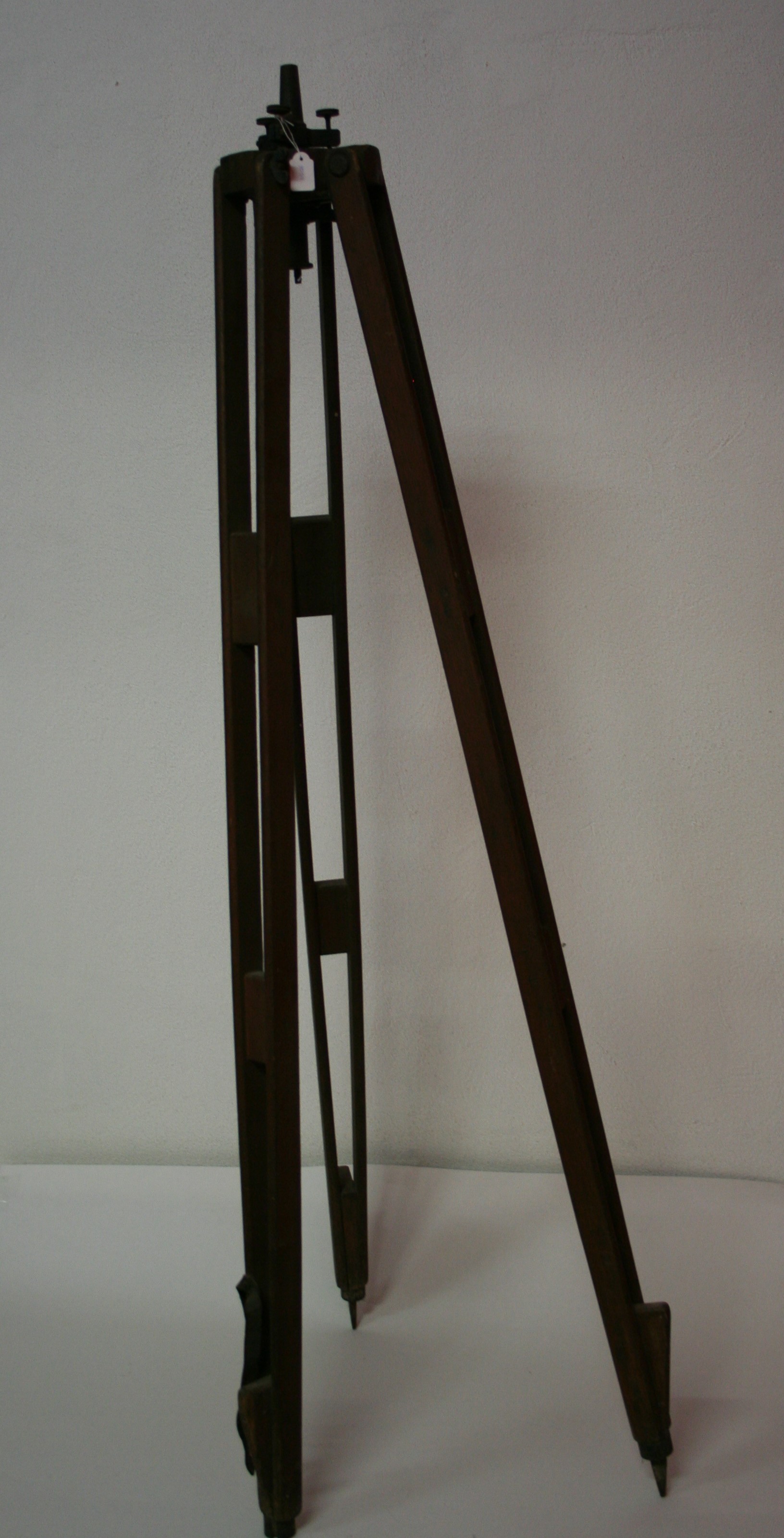 Composto por três pés ou escoras articuladas e um superior para apoio do instrumento.