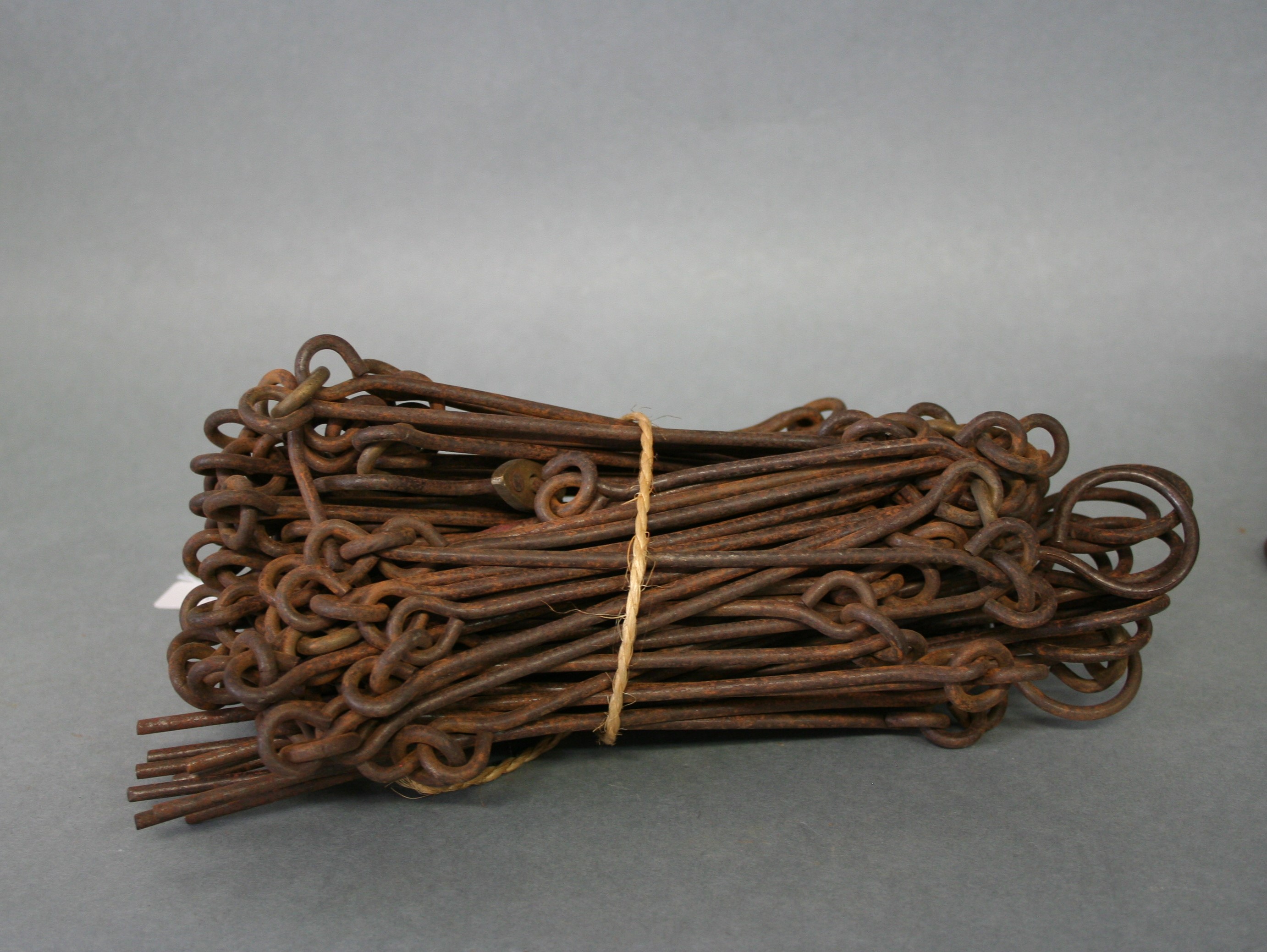 | Descrição: | Composta por vários fusis de arame de ferro. Estes estão ligados uns aos outros por meio de anéis de metal. |