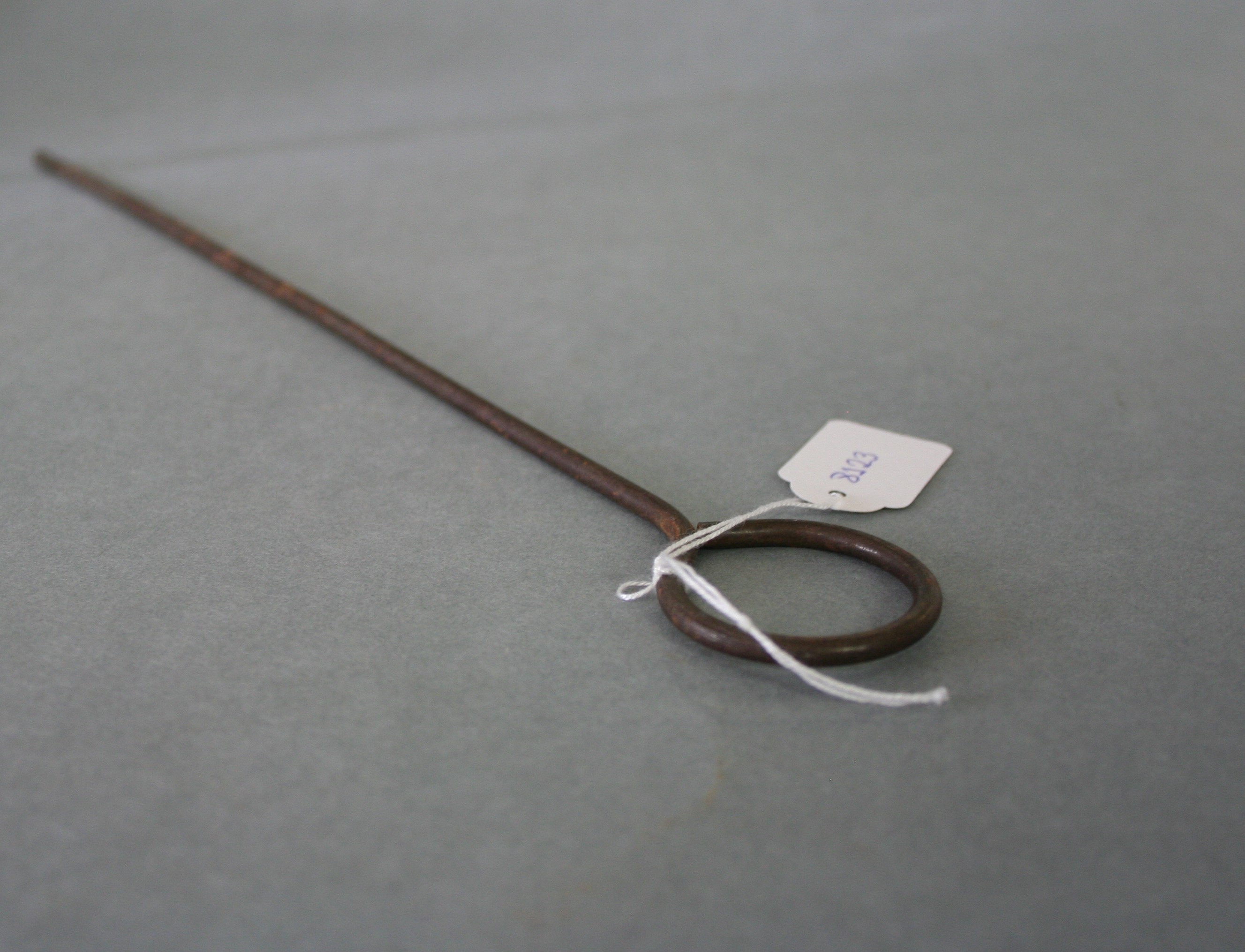 Composta por uma barra fina em ferro com uma argola na parte superior e ponta aguçada.