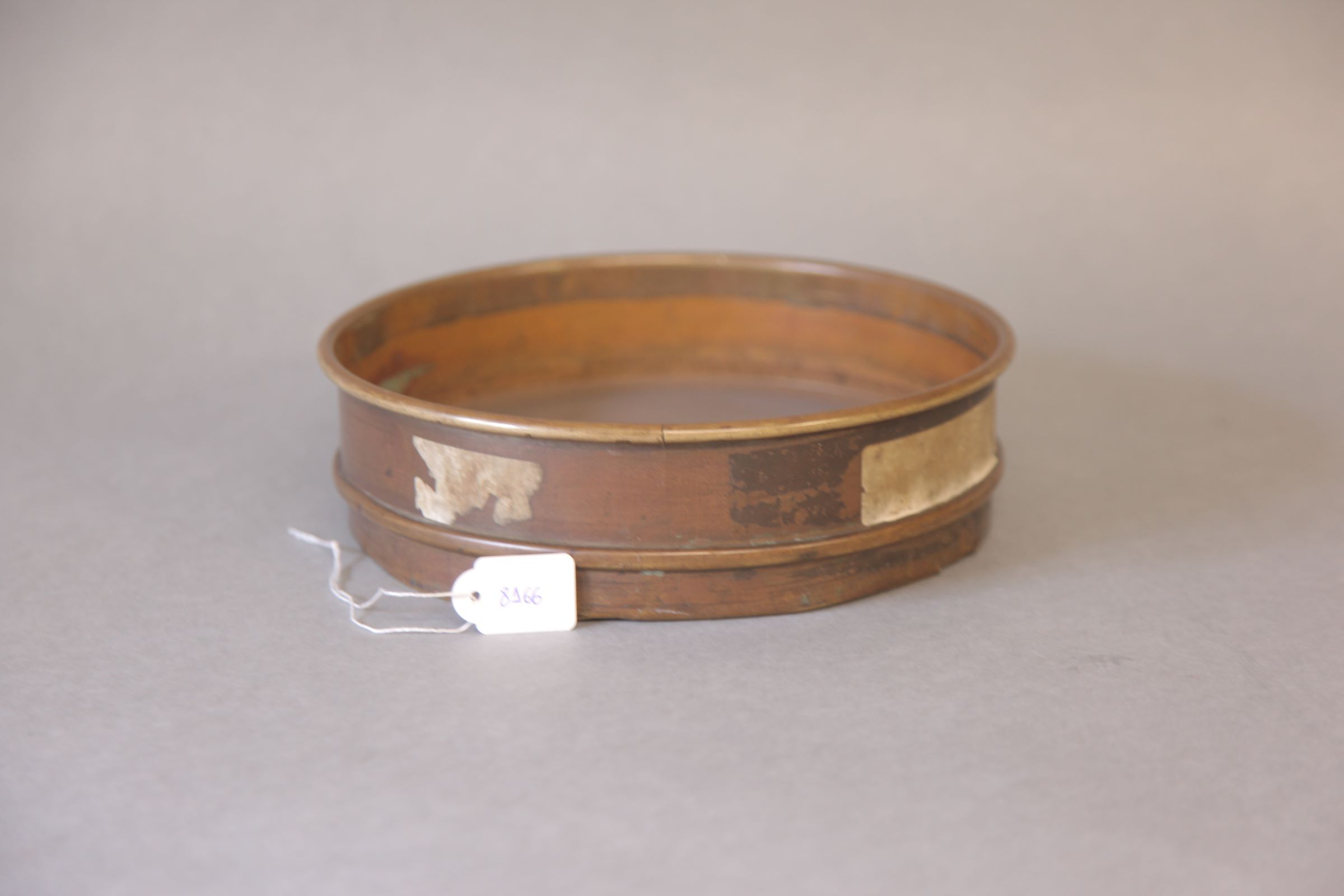 | Descrição: | Carateriza-se pelo seu formato circular sendo feita em latão e por uma malha no seu interior que permite a separação das impurezas da matéria. |