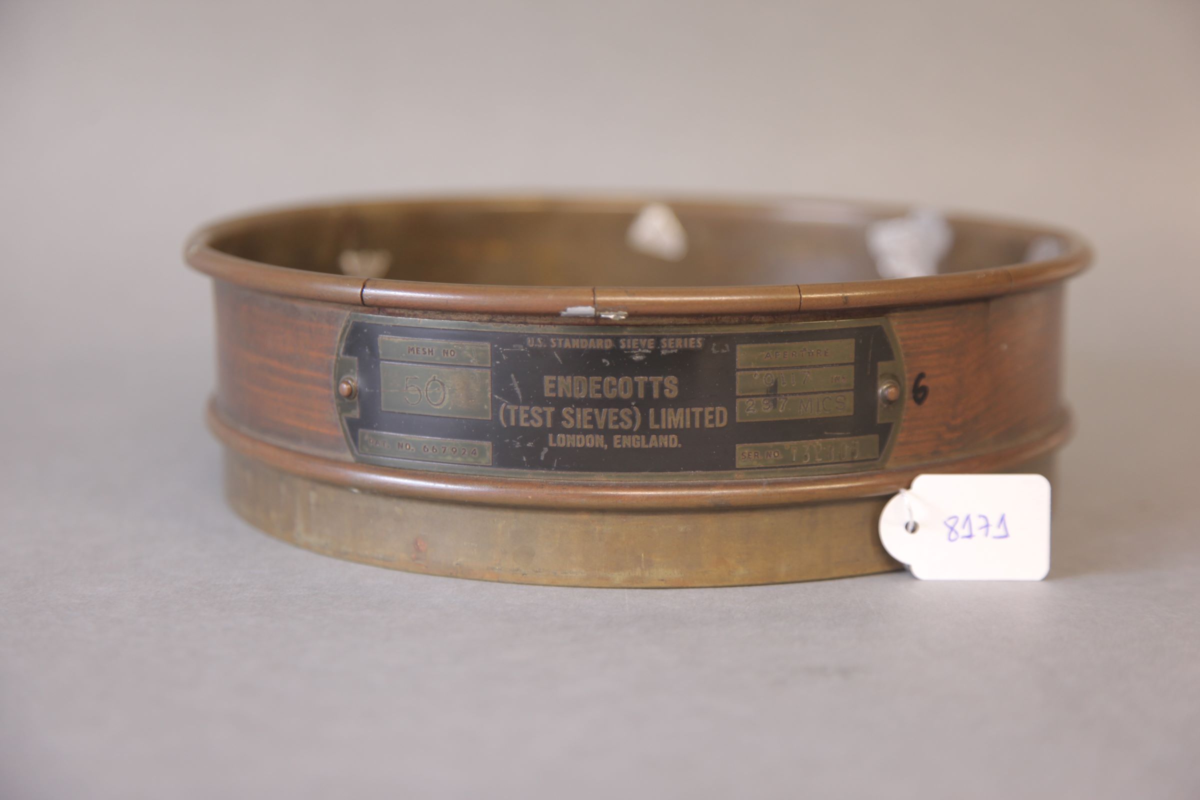 | Observações: | Contém as seguintes informações no objeto: Aperture 0117 INS 297 MICS SER. NO. 132805 Esta peneira faz parte de um conjunto sendo associada ao Agitador de Peneiras (8165). |