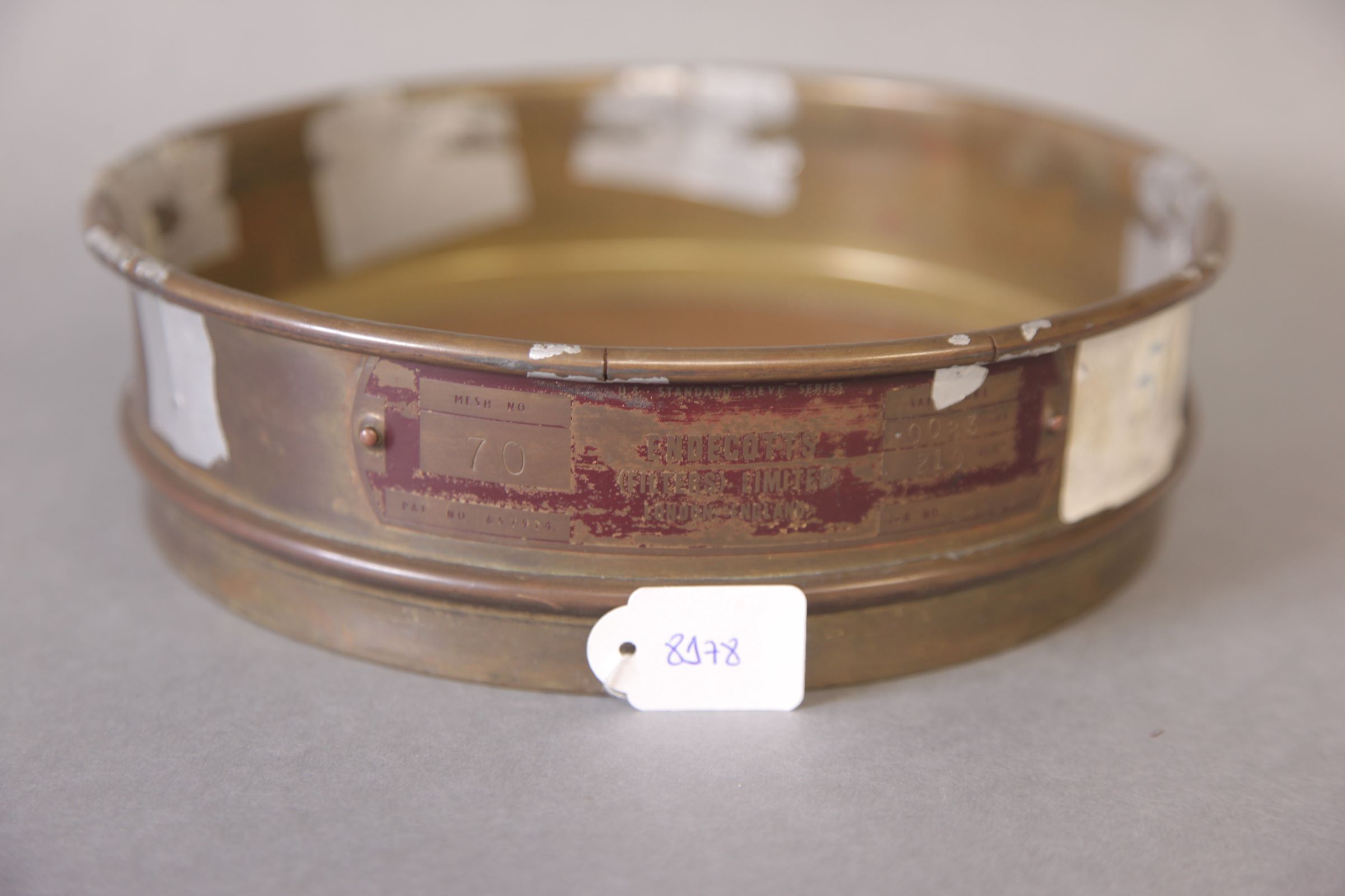 | Observações: | Contém as seguintes informações no objeto: Aperture 0083 INS 210 MICS Mesh No 70 PAT. NO. 667924 SER. NO. 94967 Esta peneira faz parte de um conjunto sendo associada ao Agitador de Peneiras (8165). |