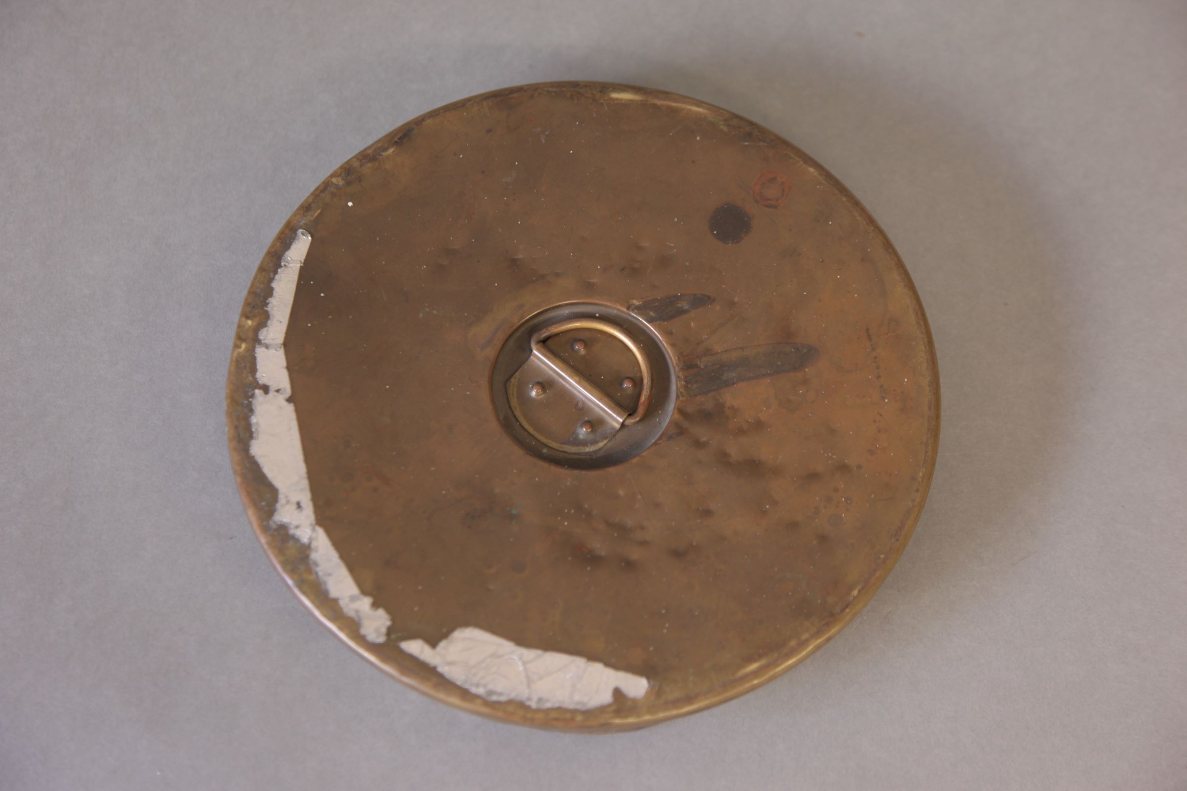 | Descrição: | Carateriza-se pelo seu formato circular sendo feita em latão. No seu centro tem uma pequena argola que permite segurar na mesma. |