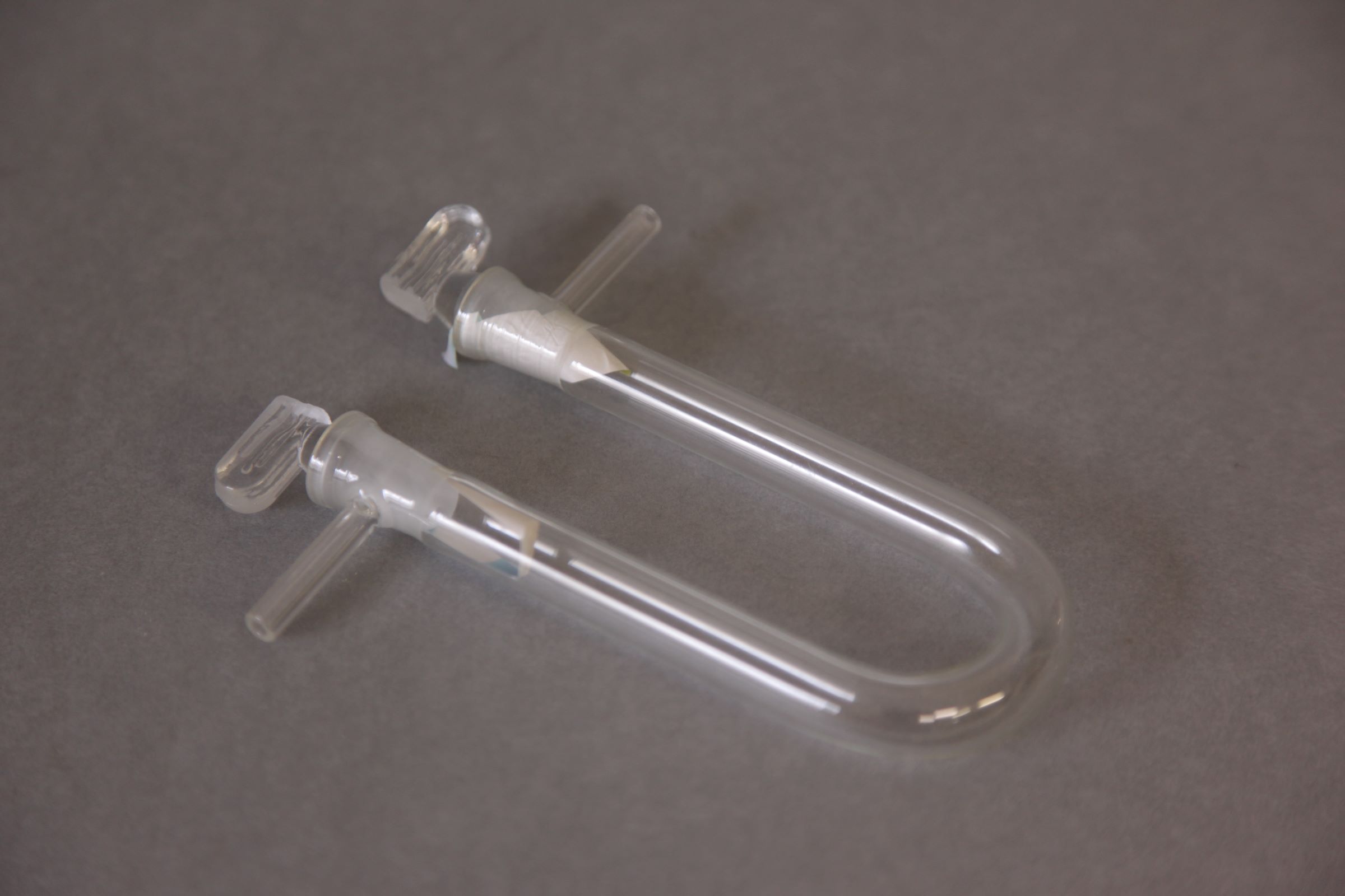 | Denomimaçao Especifica: | Tubo em U para substâncias dessecadoras com tubuladuras laterais com torneiro-rolha e esmerilado |