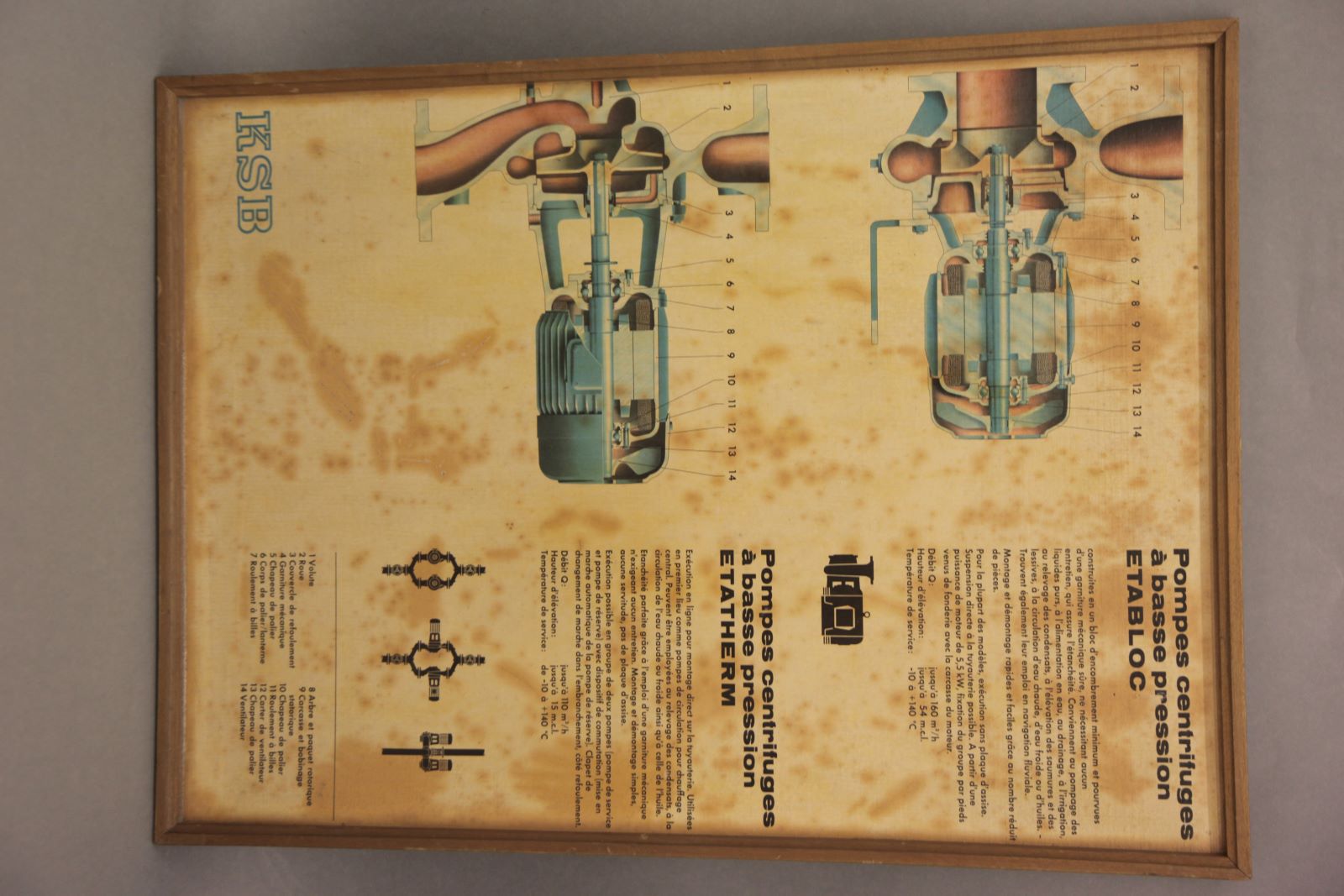 | Observações: | Pompes centrifuges à basse pression ETABLOC e Pompes centrifuges à basse pression ETATHERM. Existe uma peça museológica igual a esta (8191) que está exposta. |