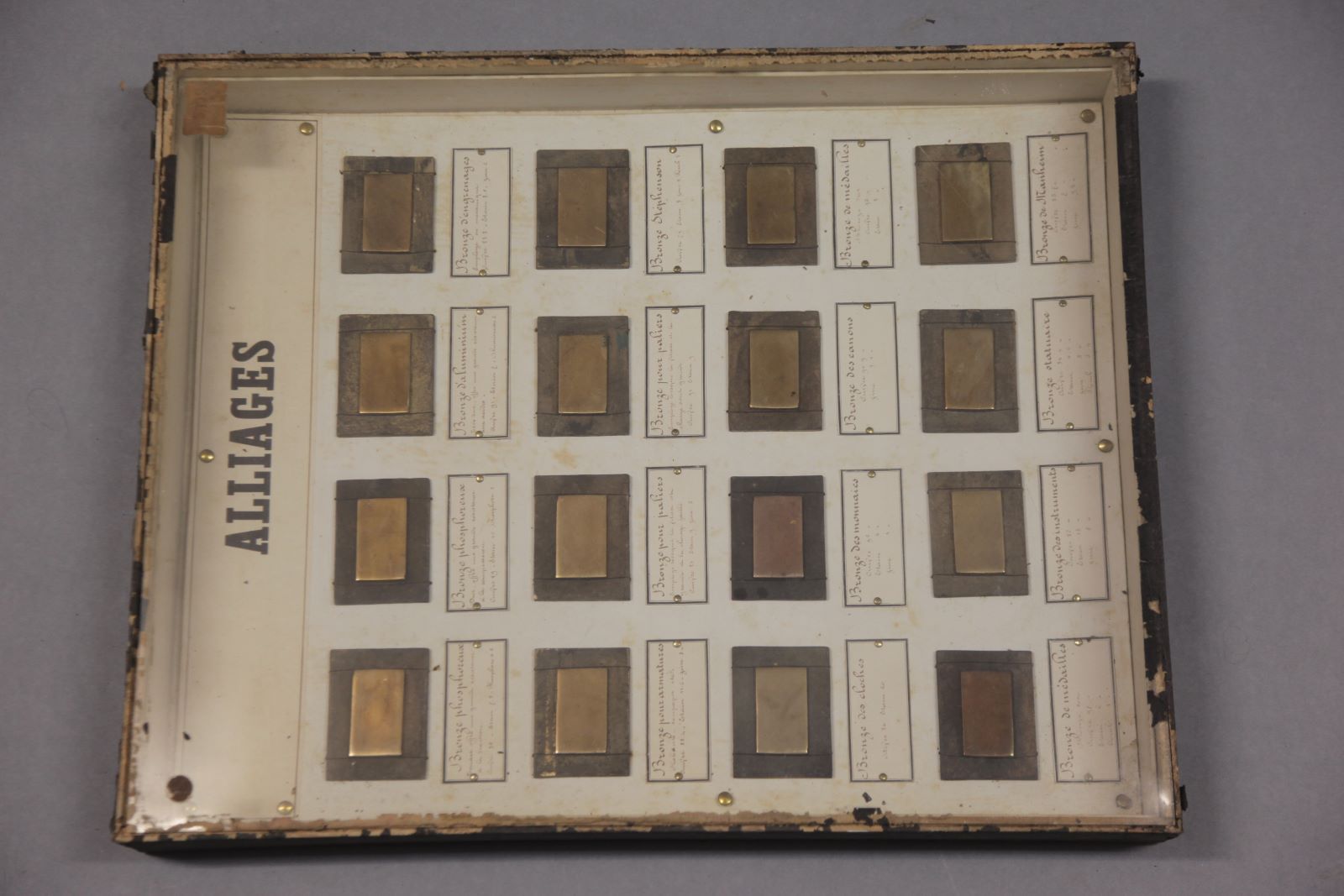 | Descrição: | Quadro com conjunto de amostras de ligas de Deyrolle. |