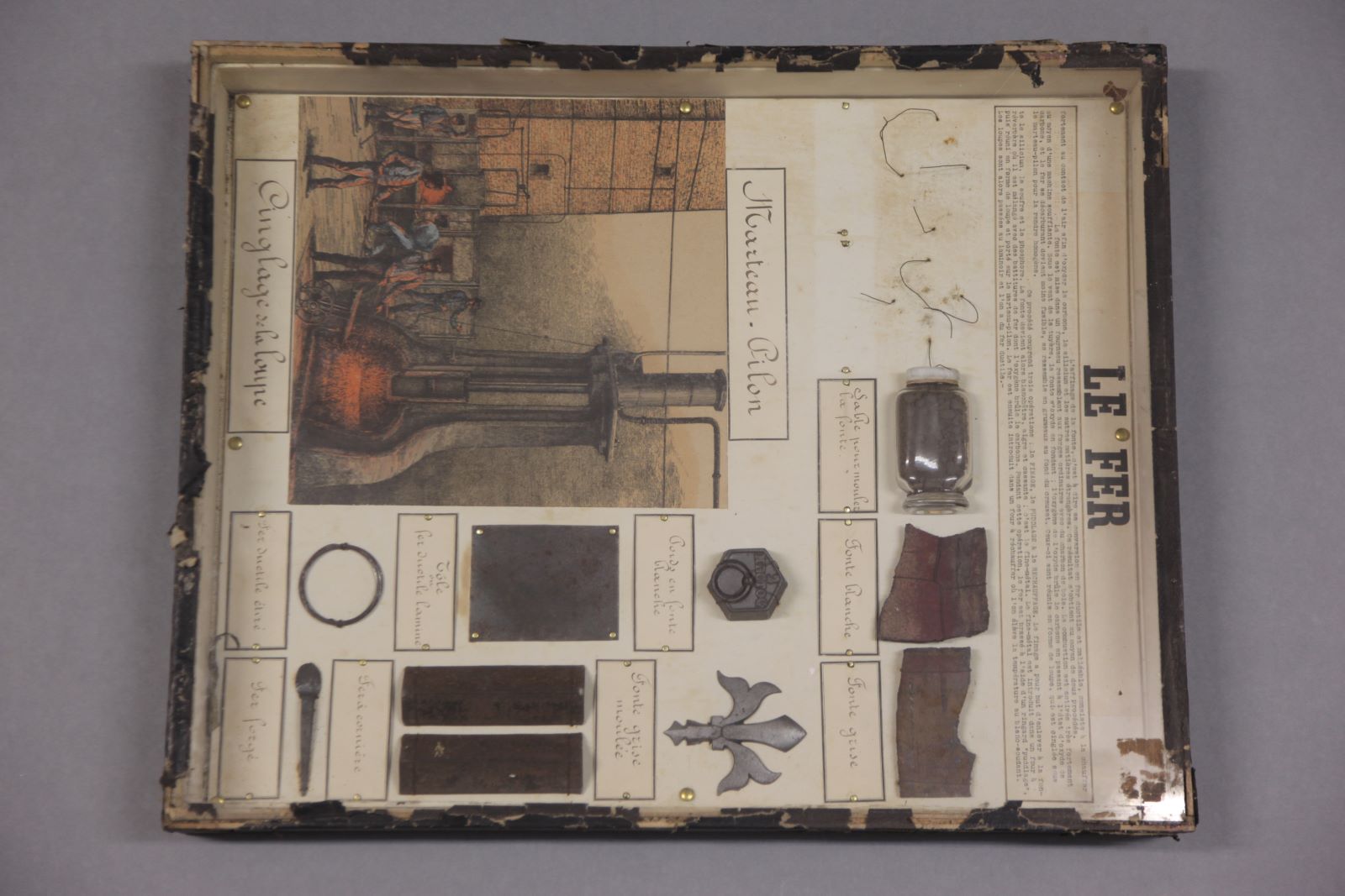 | Descrição: | Quadro com conjunto de amostras de ferro de Deyrolle. |