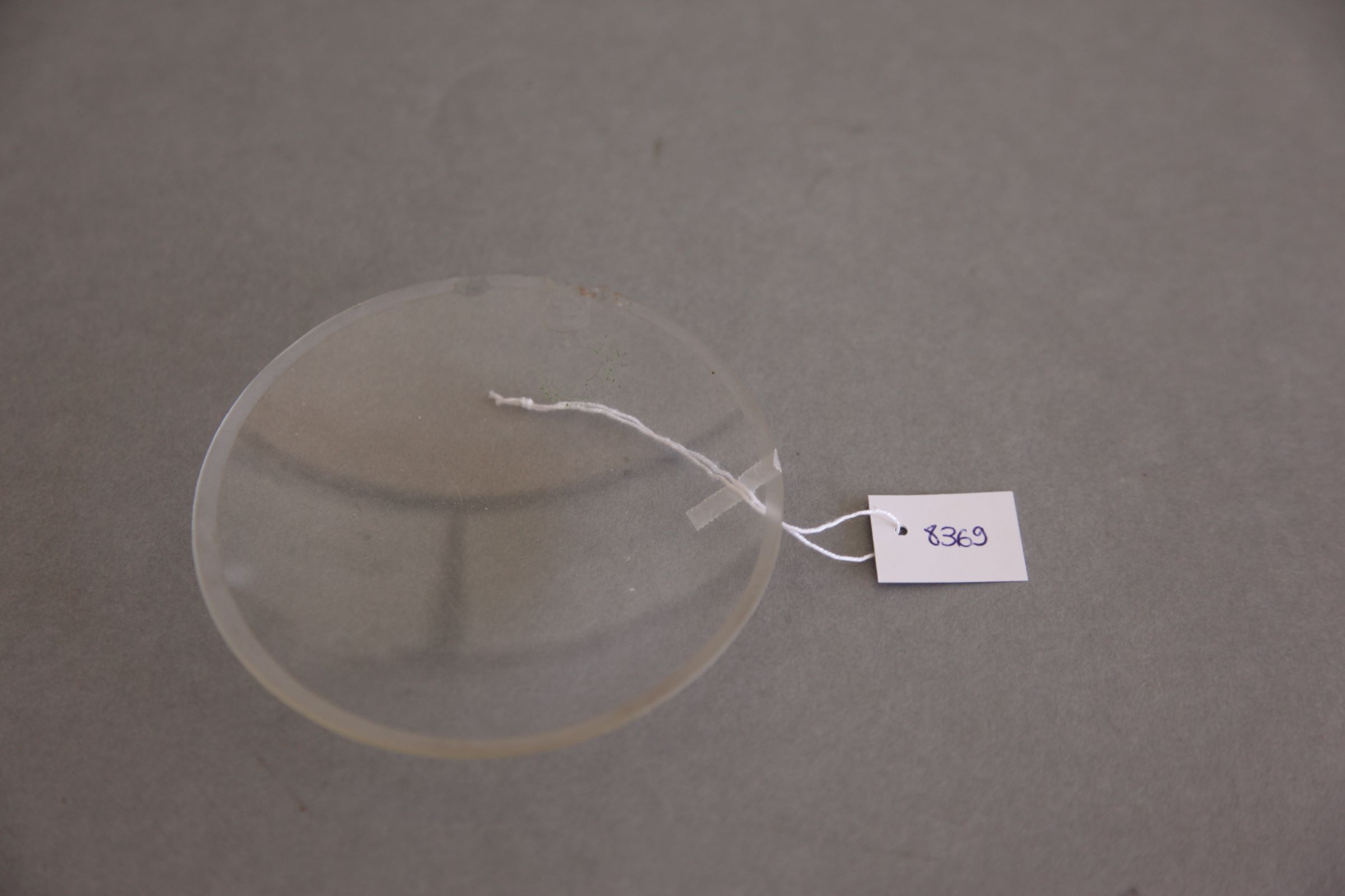 | Descrição: | Composto por um vidro circular ligeiramente côncavo. |