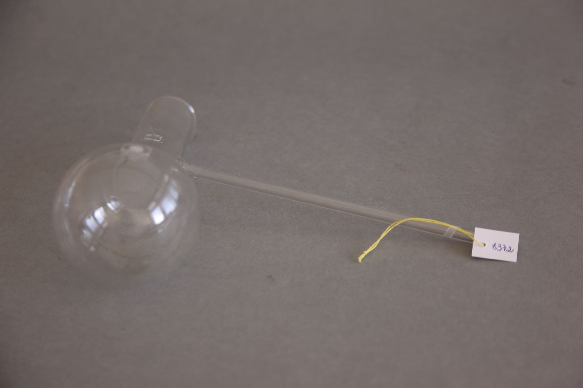 Fundo redondo da garrafa da destilação de vidro com o braço lateral.