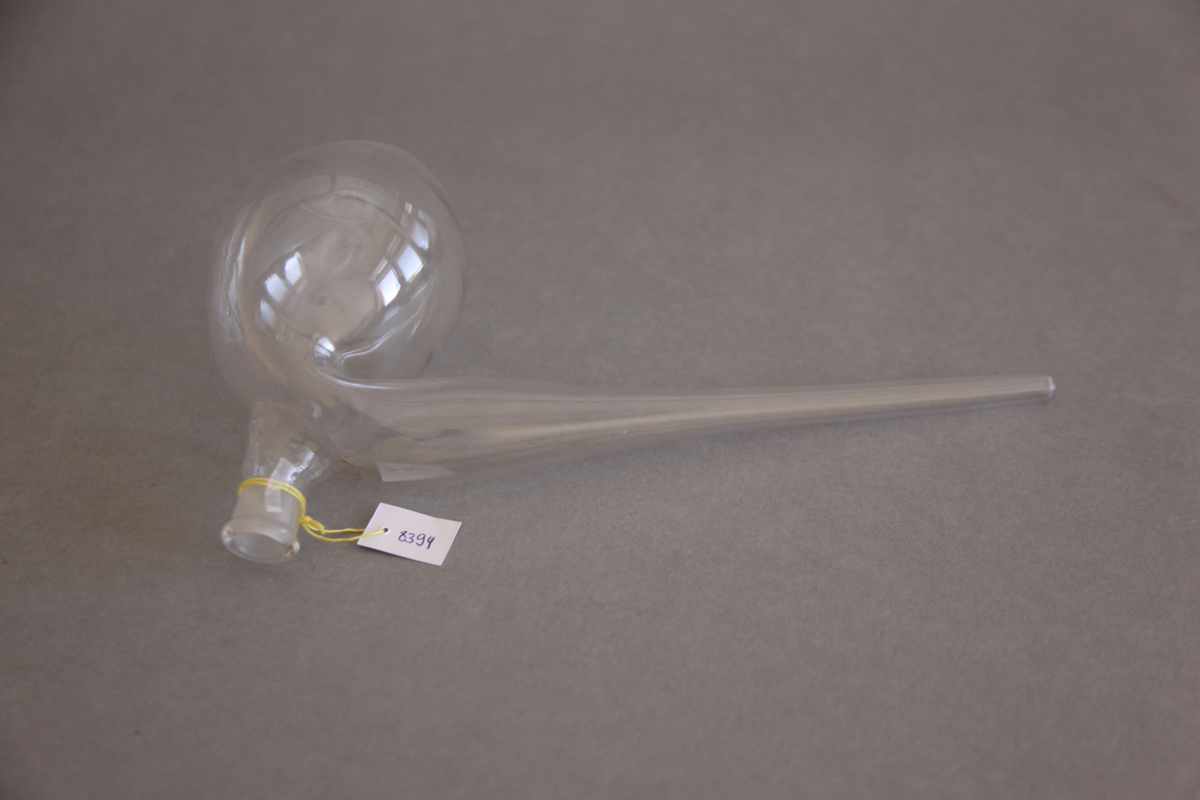 | Descrição: | Composta por um recipiente em vidro com um gargalo alongado e curvo. |