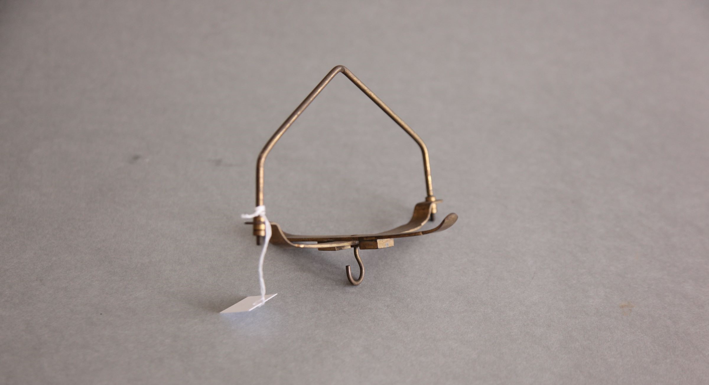 | Descrição: | Eixo de suspensão em formato de um triângulo que se acredita que faz parte de uma balança. |