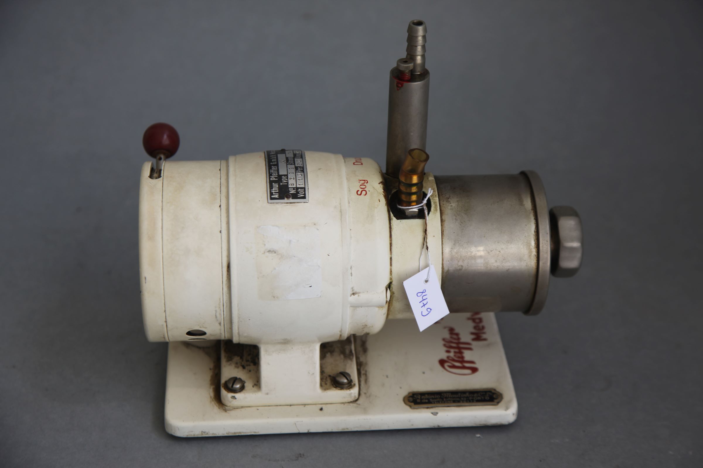 | Observações: | A peça museológica em questão está no ARM_MUSEU_008 na 3ª prateleira. Na parte superior tem um conjunto de informações relativamente à potência da peça, lê-se o seguinte: "Strom ~ / Volt 110 / Per. 50 / Amp. 0,9 / Sog Druck". |