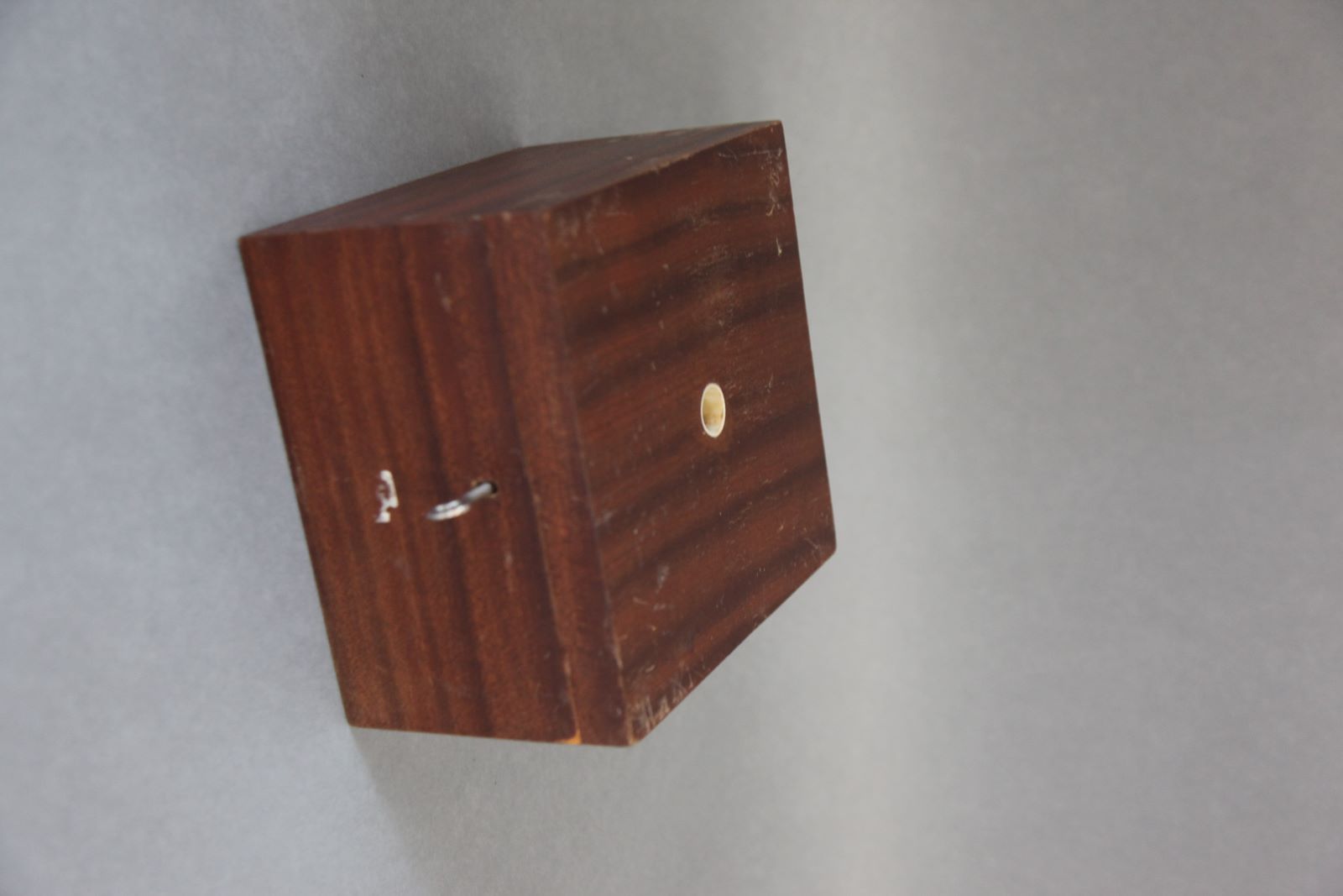 Representa uma caixa em madeira sendo que no seu centro há uma abertura redonda. Além disso, esta caixa de voto detém uma chave.