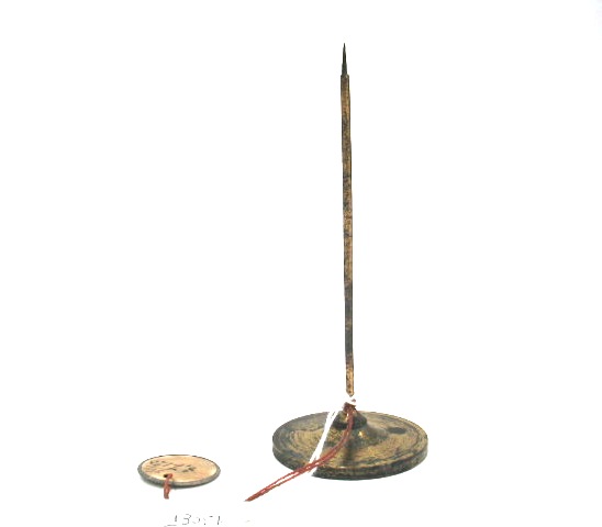 | Descrição: | Formato de uma agulha caraterizando-se pela seu formato esguio sendo que na base é apoiada por uma base circular em latão. |