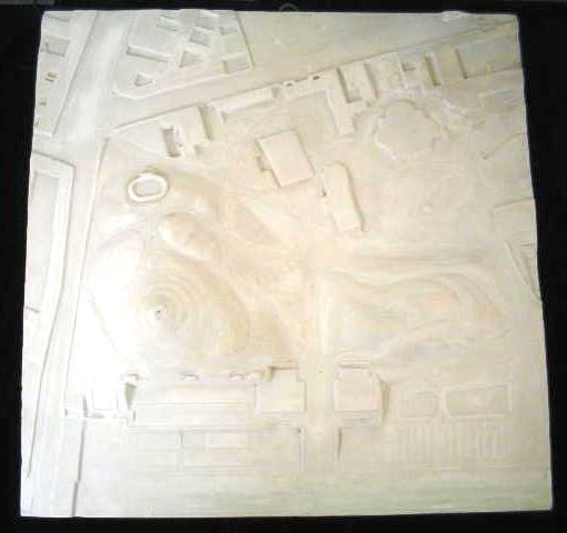| Descrição: | Planta em gesso de parte do jardim das plantas de Paris, onde se pode observar entre outros elementos o labirinto, lagos e estufas. |