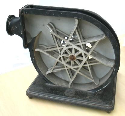 | Descrição: | Modelo de ventilador apresentado em corte, onde se pode observar o interior composto por um sistema de paletes que captavam o ar através de uma chaminé e depois o expulsava-o para o exterior. |