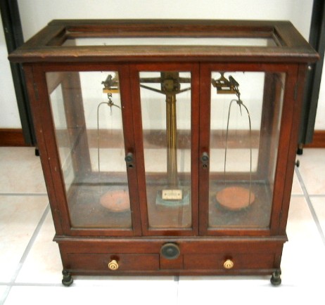 | História do Objecto: | As balanças tiveram origem na antiga civilização egípcia, em torno de 5000 A.C. Este aparelho é destinado a determinar a massa dos corpos ou como se diz em linguagem comum, para "pesa-los". Balanças existem dos mais diversos tipos, cada uma com uma certa sensibilidade, capaz de assimilar pequenas variações de massa. As balanças diversas características, como: Sensibilidade - uma das mais importantes características, diz-se que uma balança é sensível ao miligrama quando, por exemplo, a massa de um miligrama em um dos pratos consegue provocar o desequilíbrio, inclinando para o lado. Fidelidade - é ter o mesmo resultado sempre que medir a mesma massa, temos que observar que o resultado da pesagem não seja influenciado pela posição do corpo no prato da balança. Justeza - existe sempre equilíbrio quando se colocam massas iguais nos dois pratos, quando temos braços iguais. Conforme o princípio de funcionamento, as balanças podem ser classificadas em: Gravimétricas quando comparam a carga com padrões de massa aferidos (pesos), e Dinamométricas quando o peso da carga é equilibrado pela força elástica de molas metálicas ou sistema equivalente. Esta última estão sujeita aos defeitos conhecidos como histereses elásticas e com o uso perdem rapidamente as características iniciais, logo seu uso para o comércio é condenado. Para pesagens de precisão alguns fatores influenciam, como: Temperatura, a posição da carga sobre o prato, o desnivelamento da balança e outros. |