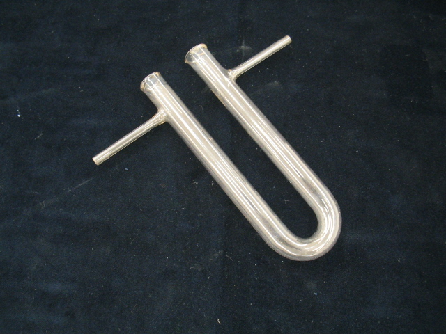 Composto por um tubo de vidro em forma de U com um tubo lateral em cada braço.